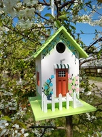 Domek dla ptaków - ozdobna budka lęgowa z zielonym dachem