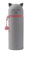 Piórnik - tuba silikonowa Cat lovers szary kot