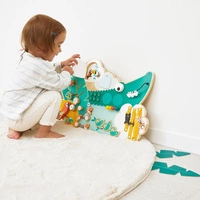 Janod Duża drewniana tablica manipulacyjna 14 aktywności Krokodyl Tropik 18m+