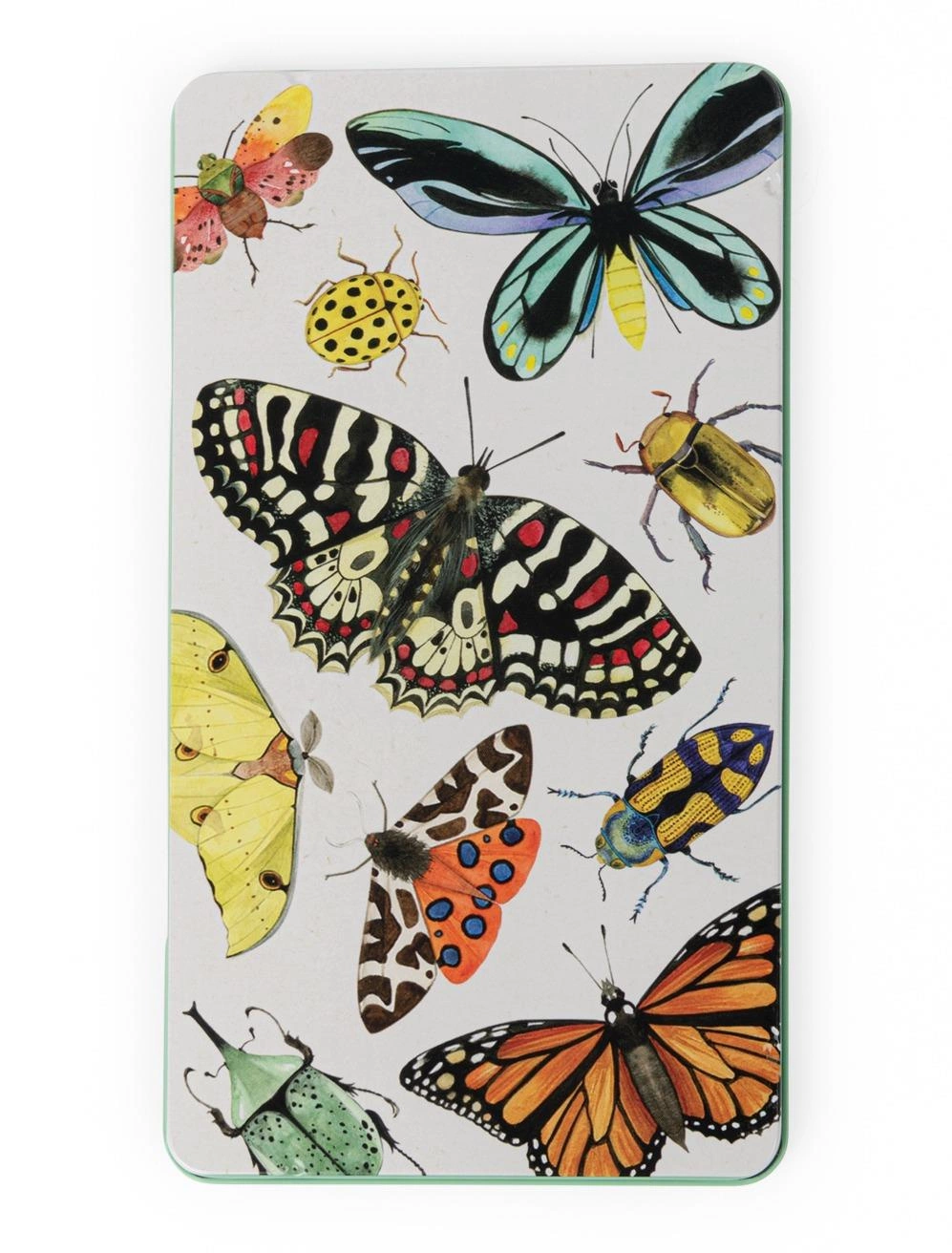 Niesamowity zestaw 12 kredek o wielokolorowych wkładach. Tęczowe końcówki dają możliwość malowania nieskończonej ilości odcieni. Kredki zamknięte są w pięknie ilustrowanym metalowym pudełku w motyle i inne owady. Opakowanie jest łatwe w transporcie i dodatkowo chroni zawartość.