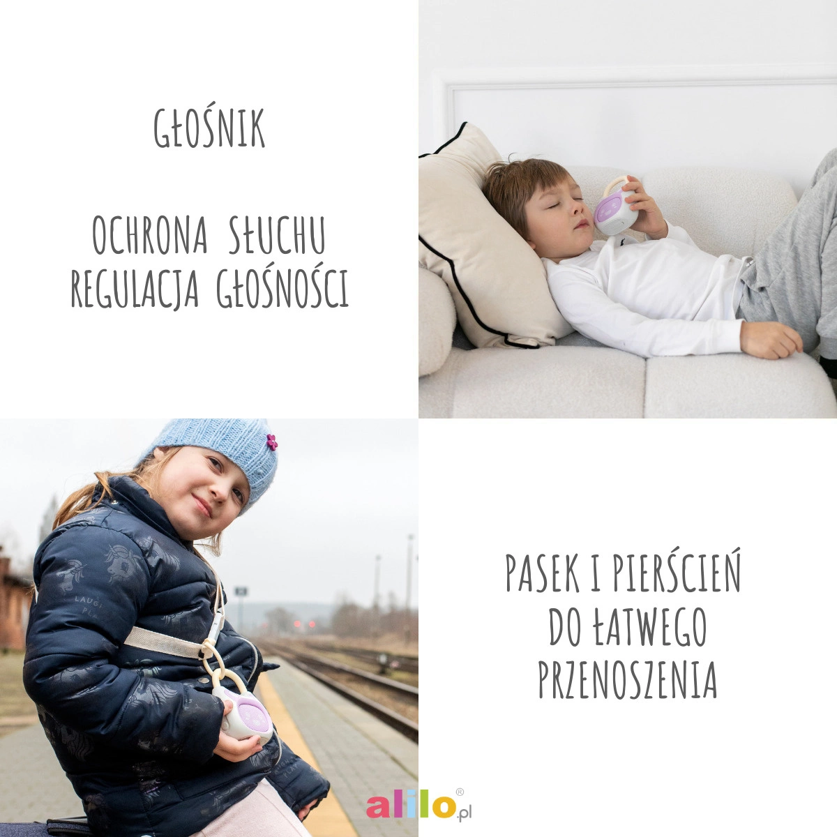 Posiada wgrane polskie i angielskie piosenki, bajki, kołysanki oraz kojące dźwięki, które ułatwiają zasypianie.