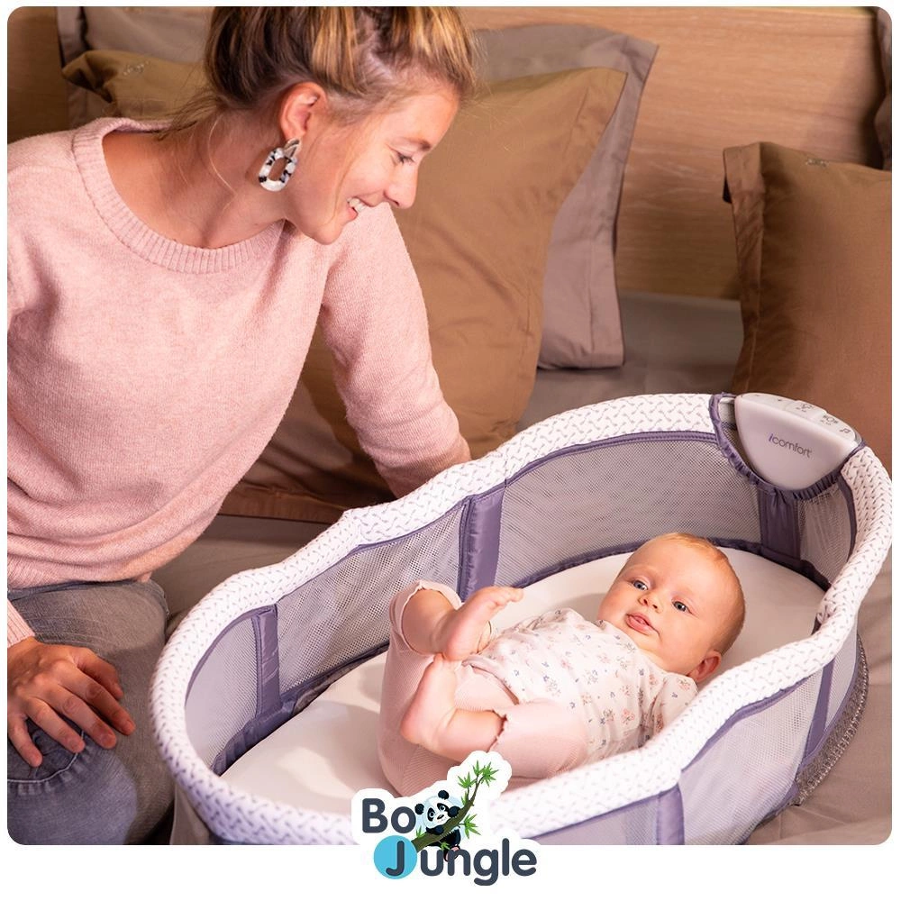 Przenośne łóżeczko zapewnia bezpieczną i wygodną przestrzeń do spania, a siateczkowe boki pomagają w cyrkulacji powietrza i zapewniają łatwy dostęp do ukojenia maluszka.