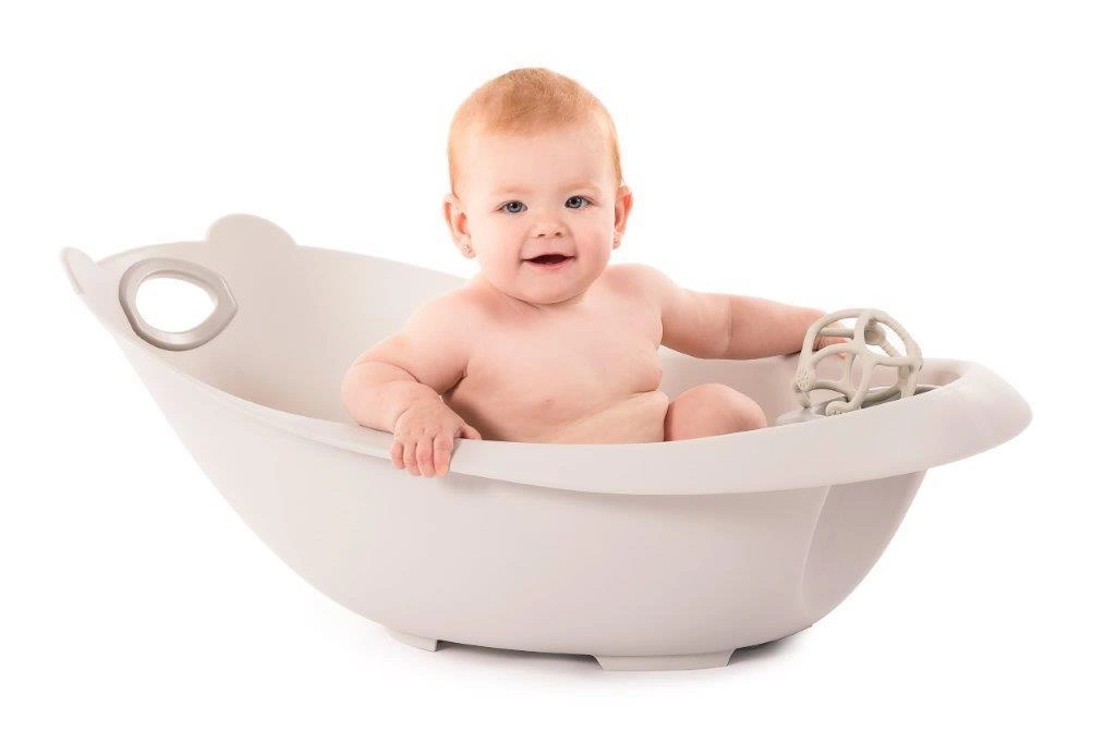 Dodatkowo poręczna, wyjmowana mydelniczka z ekologicznego silikonu sprawia, że gąbka i mydełko są zawsze pod ręką. Można też łatwo spuścić wodę przez korek spustowy w kształcie misia. Uchwyt wykonany jest z antypoślizgowego materiału, ułatwia przenoszenie wanienki i wylewanie z niej wody. W opcji dodatkowej można dokupić bezpieczny biały stojak pod wanienkę (z regulacją wysokości).Wanienka ma wyjątkowy kształt, jest poręczna i wygodna dla malucha, wysokiej jakości matowe tworzywo i silikonowe akcesoria w pastelowych kolorach nadają jej szczególny wygląd.
