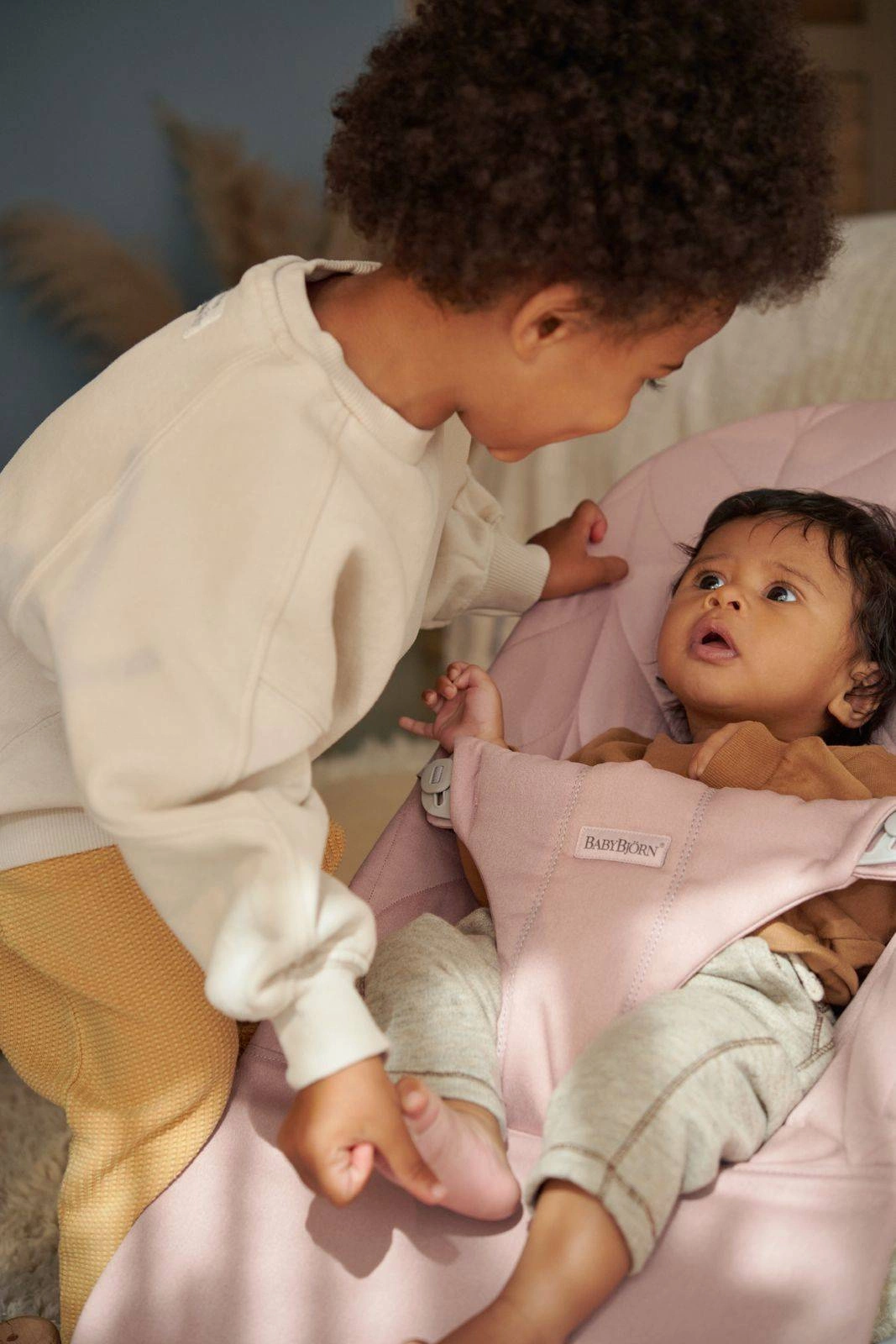 BABYBJORN - leżaczek BLISS COTTON, Petal Quilt, Zgaszony róż + Zabawka Googly Eyes Pastels