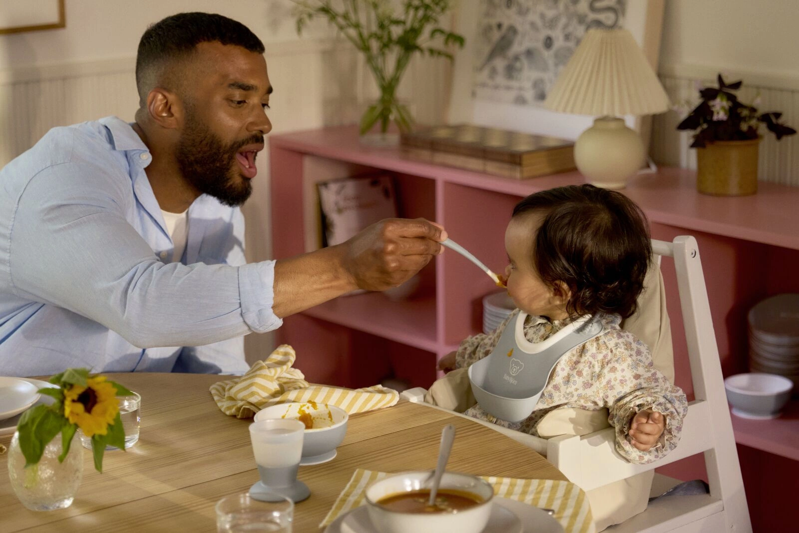 Zestaw jest idealny dla małych dzieci, które dopiero zaczynają smakować pokarmy stałe, ale są nadal karmione przez rodzica. Zawiera wszystko, co niezbędne do wprowadzenia dziecka do pokarmów stałych: solidną miskę, którą można łatwo trzymać w jednej ręce (dzięki czemu możesz karmić drugą), łyżkę do karmienia z długim uchwytem i wygodny śliniaczek, który pomoże złapać każdy bałagan.