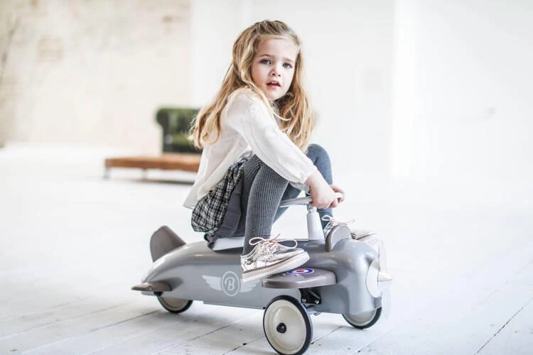 Jeździk Speedster Samolot od Baghera - Samolot retro do podróżowania w dobrym stylu! Samolot wyposażony jest w skrzydła i mini śmigło, szare metalowe nadwozie i brązowe detale, które nadają mu nieodpartego uroku. Samolot Speedster jest odpowiedni dla maluchów już od 1 roku życia. Jeździk jest wyposażony w 3 koła, dwia z przodu i jedno z tyłu dla zapewnienia maksymalnego bezpieczeństwa i stabilności. Korpus jest wykonany z mocnego metalu, aby zabawka służyła Wam przez wiele lat.