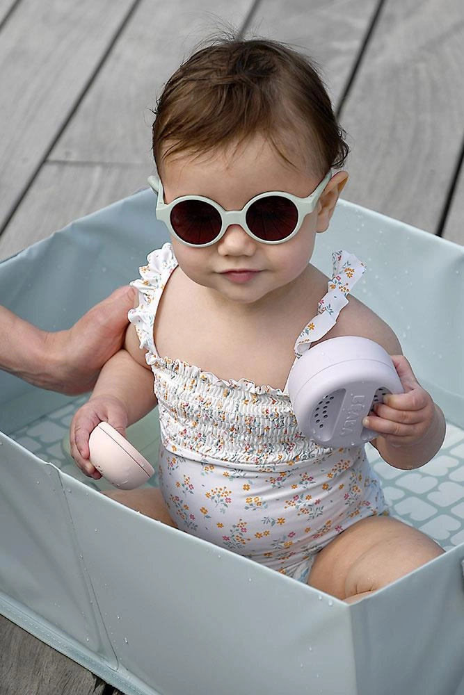 Okulary przeciwsłoneczne z kolekcji Joy francuskiej marki BEABA przeznaczone są dla dzieci powyżej 9. miesiąca życia. Zaprojektowane z naciskiem na praktyczność, bezpieczeństwo i wygodę użytkowania, a przede wszystkim ochronę oczu malucha. Antypoślizgowe, zakrzywione ramiona nie uciskają głowy dziecka, są dobrze dopasowane i pozostają na miejscu, także podczas typowych dziecięcych aktywności. Profilowanie strefy nosa jest uniwersalne i wyjątkowo stabilne, a ponadto wraz ze strefą skroni wykonane zostało w technologii Fit z elastycznego, trwałego tworzywa, które dopasowuje się do kształtu twarzy. Okulary posiadają regulowane zauszniki 360° oraz elastyczną opaskę, którą można w razie potrzeby zamocować na klik (dzięki silikonowym zaczepom) dla optymalnego komfortu.
