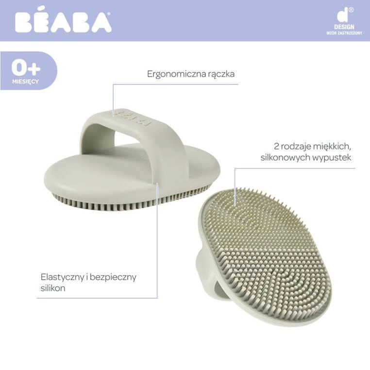 Beaba Silikonowa szczoteczka do mycia i masażu dziecka Misty green