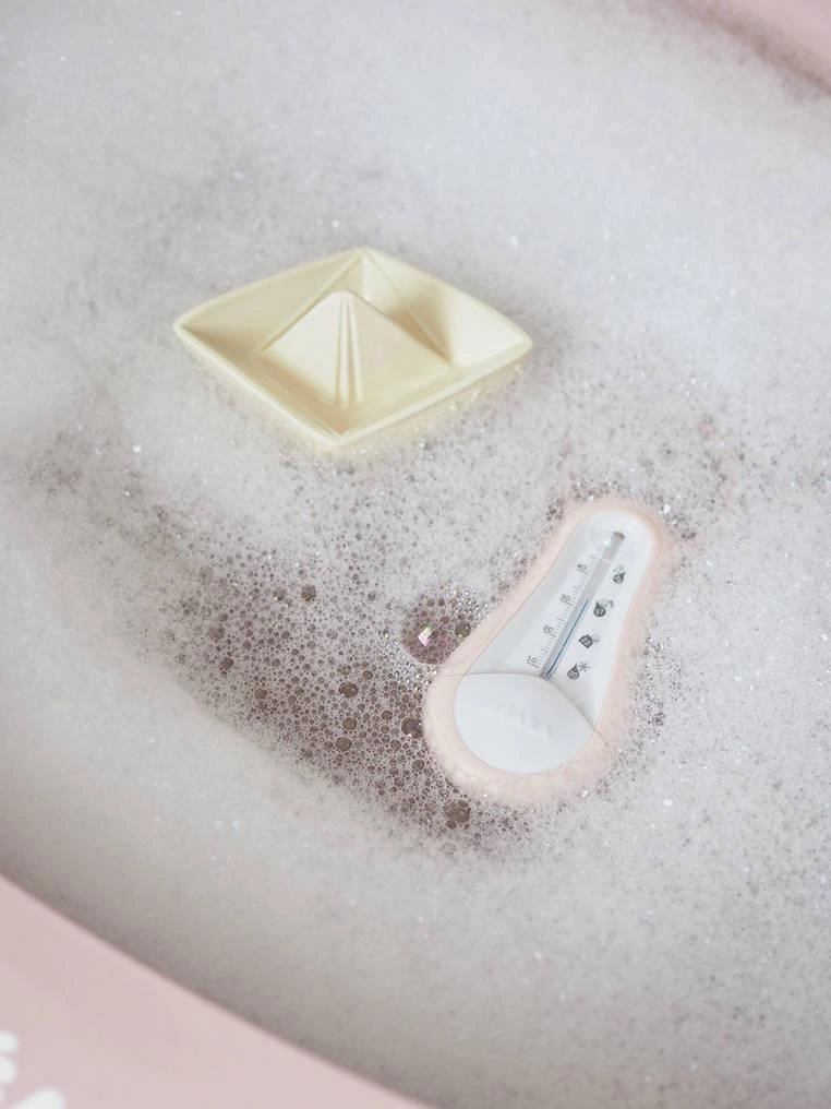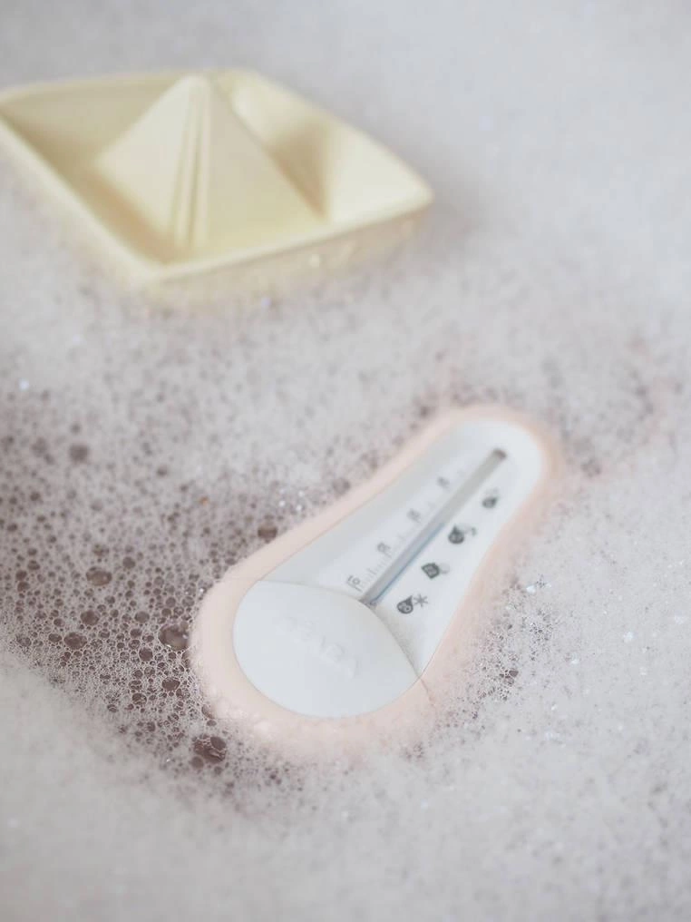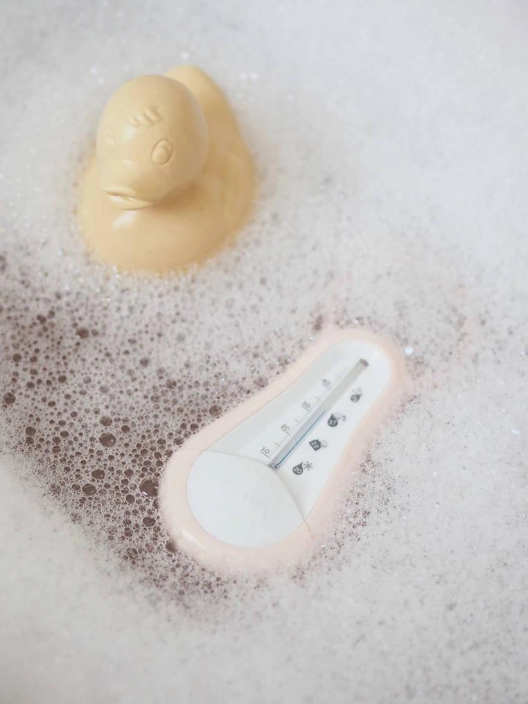Termometr francuskiej marki BEABA przeznaczony do mierzenia temperatury wody do kąpieli maluszków. Jest wyjątkowo wygodny w użyciu - unosi się na wodzie, ma wyraźną, czytelną skalę i dodatkowe oznaczenia, pozwalające natychmiast zorientować się czy temperatura wody jest optymalna dla dziecka. Jego zaokrąglony kształt sprawia, że jest całkowicie bezpieczny dla dziecka – nie ma ryzyka skaleczenia. Termometr posiada ponadto praktyczny uchwyt do zawieszania w łazience lub zamocowania w kosmetyczce maluszka.