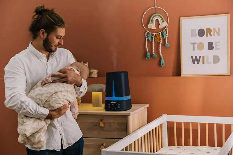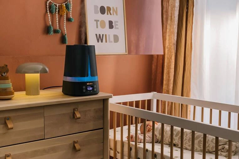 Ultradźwiękowy nawilżacz powietrza Zen Air francuskiej marki BEABA. Nie tylko odpowiednio nawilży, ale również odświeży powietrze w pokoju dziecka, zapewniając mu większy komfort oddychania i lepszy sen. Urządzenie wykorzystuje technologię ultradźwiękową do dyfuzji zimnej pary w całym pomieszczeniu. Dzięki ultradźwiękom, membrana urządzenia wprawiona zostaje w wibracje, które rozbijają cząsteczki wody ze zbiornika na parę wodną w postaci chłodnej mgiełki, a następnie uwalniają tę mgiełkę na zewnątrz do pomieszczenia. Jest to całkowicie bezpieczny, a przy tym wydajny sposób na zagwarantowanie odpowiedniej wilgotności powietrza we wnętrzu przez cały rok – w szczególności jesienią czy zimą, kiedy ogrzewanie je wysusza.
