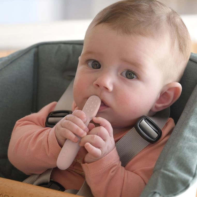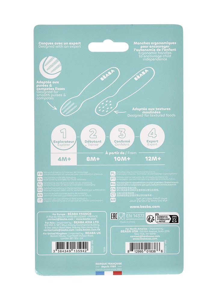 Zestaw dwóch innowacyjnych ergonomicznych pierwszych łyżeczek-gryzaków francuskiej marki BEABA zaprojektowany pod okiem specjalistów od żywienia niemowląt, aby wspierać rozwój i samodzielność maluszków. Łyżeczki wykonane zostały z ultraelastycznego silikonu, w pełni bezpiecznego dla delikatnych dziąseł i ust maluszka. Ich spłaszczony kształt z różnymi fakturami ułatwia przejście ze smoczka na łyżkę, zapewnia nabieranie optymalnych, małych porcji, dogodnych do połknięcia dla maluszka oraz stymuluje sensorycznie. Łyżeczki są tak samo zbudowane i wyprofilowane z obu stron, więc nie trzeba ich obracać. Jedna z nich ma fale, a druga wypustki. Spełniają się również doskonale w roli pierwszych gryzaków, przynosząc ulgę w trudnym okresie ząbkowania. Krótki, zaokrąglony uchwyt sprawia, że wspierają naukę samodzielnego chwytu już od 4. miesiąca życia (np. dłoniowy, pęsetowy i pięściowy). Nadają się zarówno dla dzieci prawo, jak i leworęcznych.