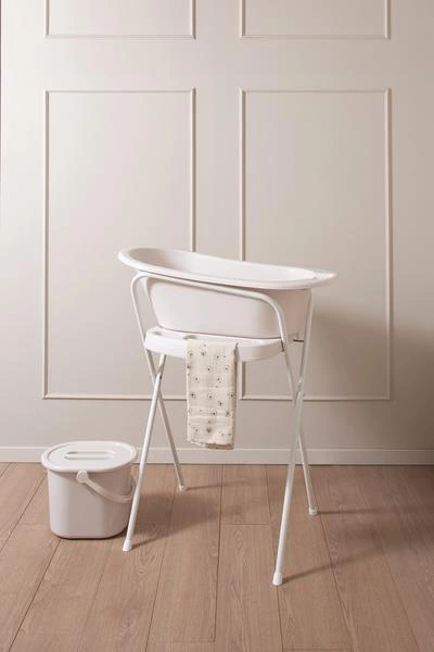 Stojak kompatybilny jest z klasycznymi wanienkami Bébé-jou, wanienkami z kolekcji Fabulous, wanienkami Thermo oraz ze wszystkimi wiaderkami kąpielowymi.