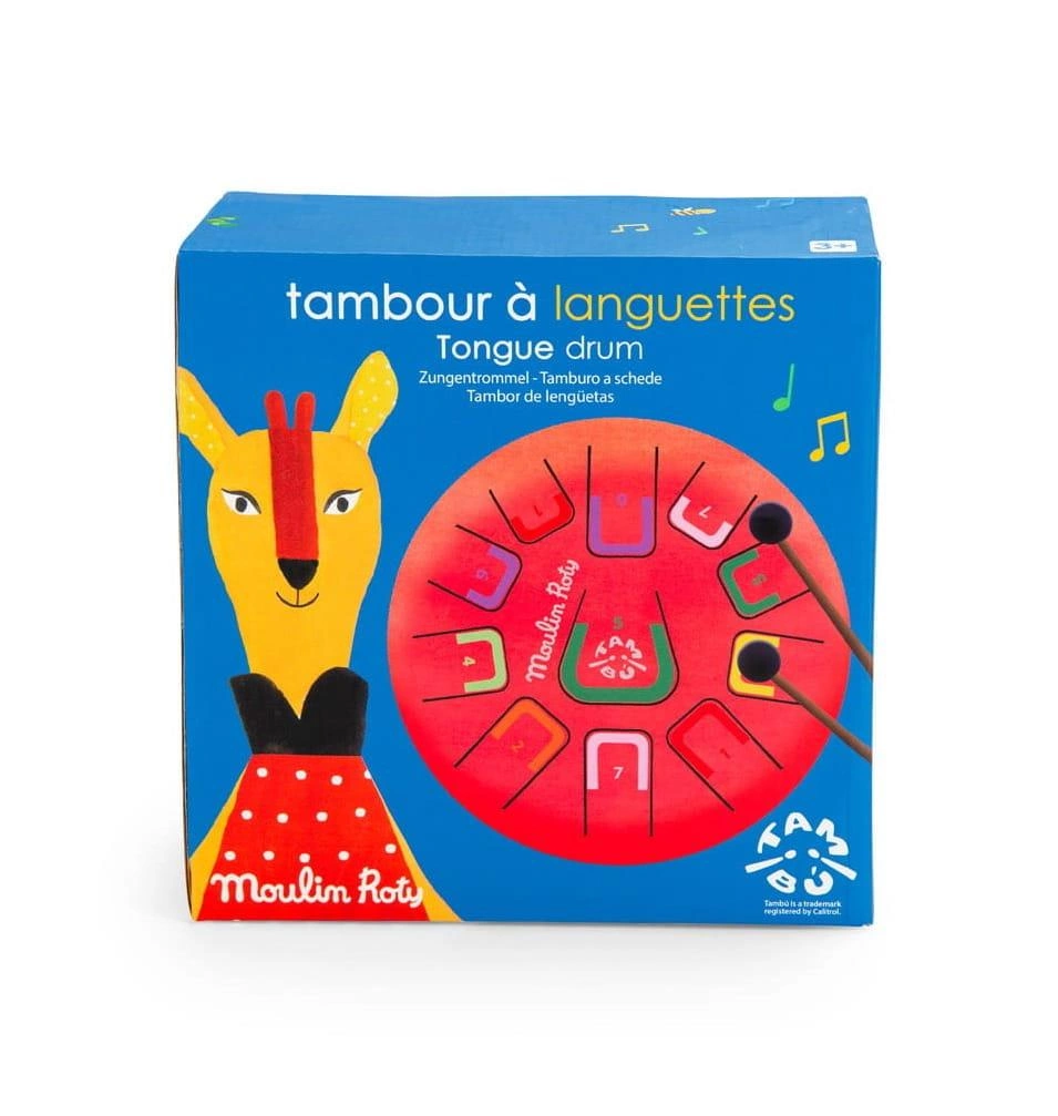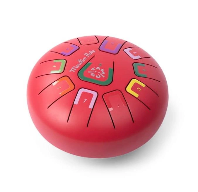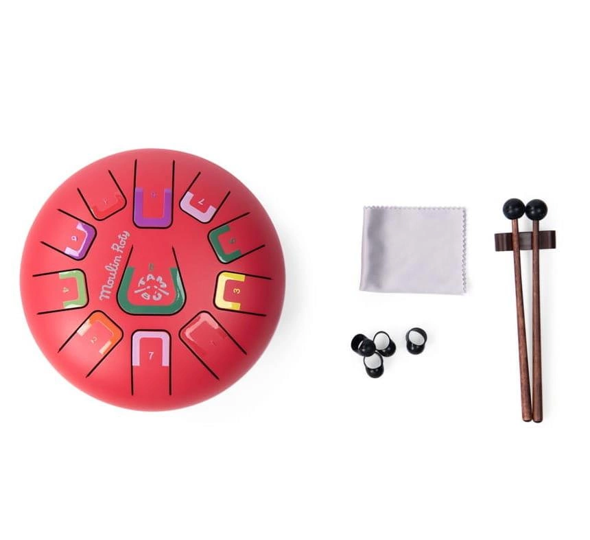 Dźwięki wydobywające się z bębenka to prawdziwa uczta dla uszu. Delikatne, melodyczne, kojące... Bębenek językowy francuskiej firmy Moulin Roty to doskonały instrument do wprowadzenia dziecko w świat muzyki i rytmu. Można na nim grać za pomocą dłoni lub załączonych do zestawu pałeczek perkusyjnych i specjalnych nakładek na palce.