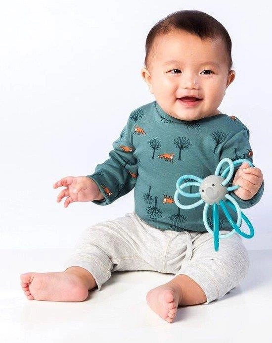 Błękitno-biały gryzak silikonowy Słonik 215870 - Manhattan Toy, zabawki dla niemowląt