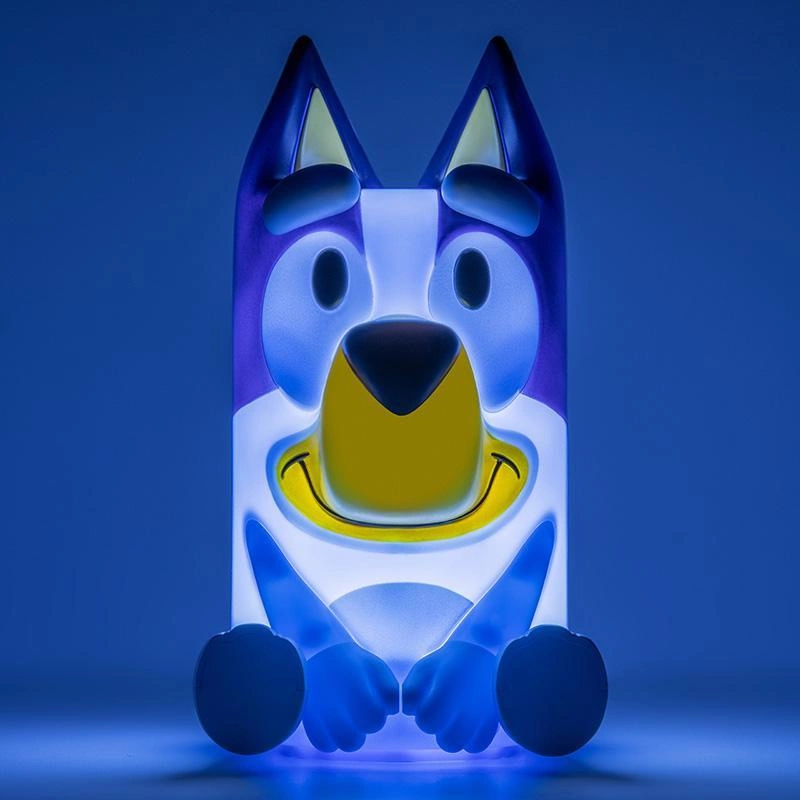 Ta urocza nocna lampka o wysokości 18 cm ma kształt ukochanej niebieskiej suczki rasy Blue Heeler – bohaterki animowanej serii Bluey.