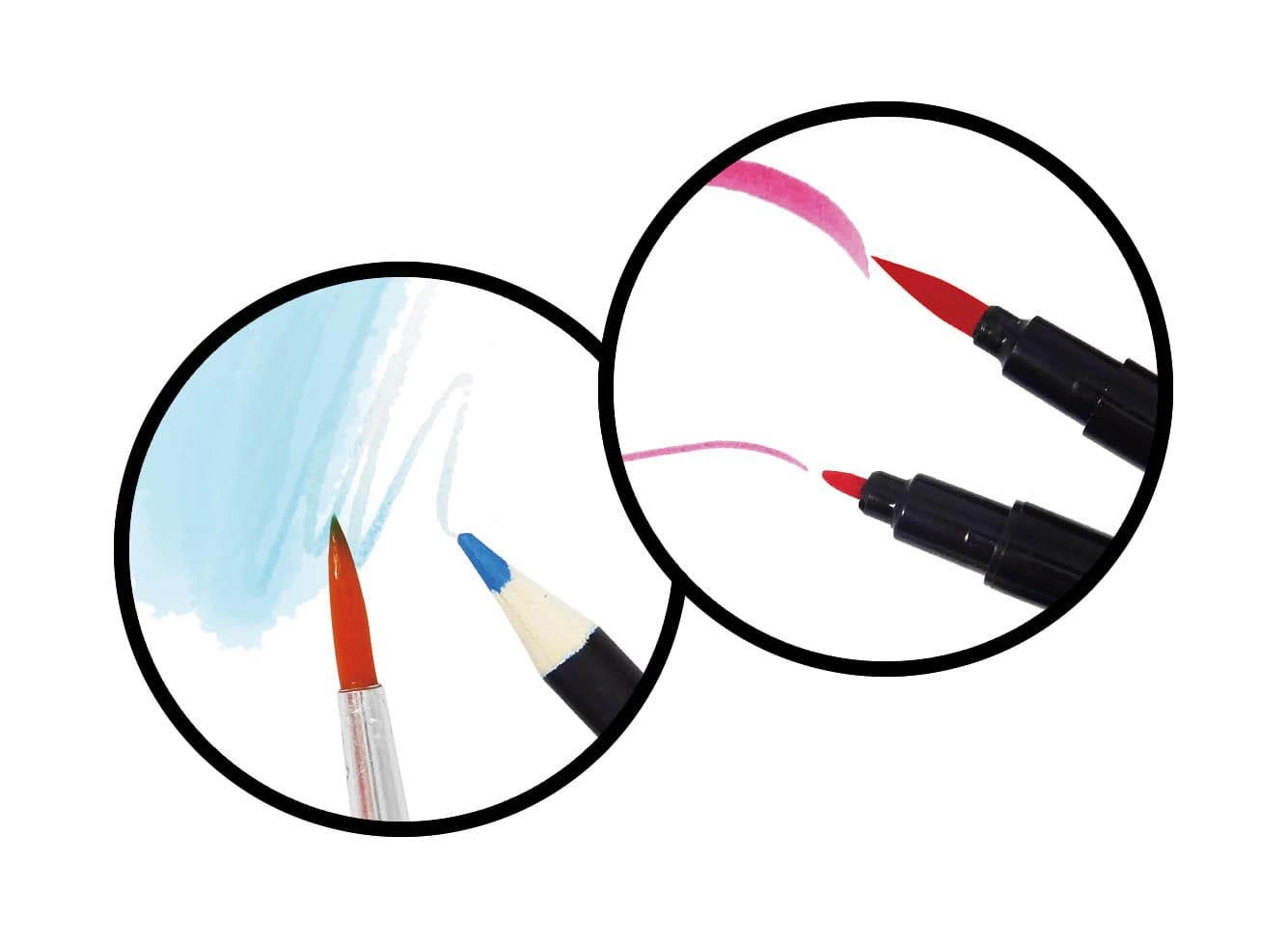 - flamastry dwustronne ( z jednej strony mają końcówkę w formie pędzelka do zamalowania większych powierzchni),