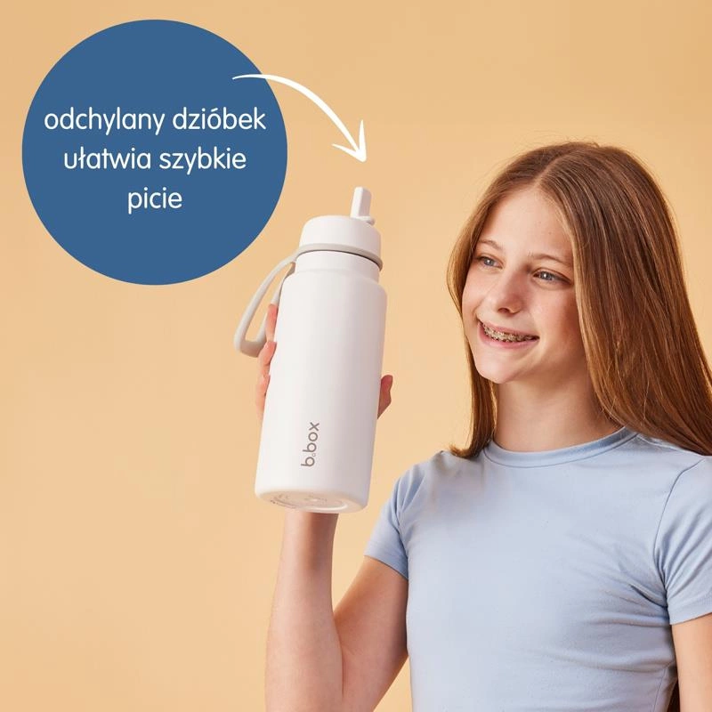 Nowość w kategorii bidonów dla dorosłych marki b.box. Dzięki innowacyjnej termobutelce już nie musisz martwić się o zapas picia podczas codziennych aktywności. Butelka z chowanym ustnikiem i silikonową rączką została zaprojektowana z myślą o większym wysiłku i dłuższych wycieczkach. Duża pojemność 1l sprawia, że nawodniasz odpowiednio organizm w ciepłe i zimne dni. Dzięki potrójnie izolowanym ściankom ze stali nierdzewnej Twój napój pozostanie zimny do 46 godzin! Odchylany dzióbek jest praktyczny i wygodny, a elastyczny uchwyt pozwala Ci na swobodne przenoszenie i trzymanie jedną ręką. Wlew jest szeroki, by umożliwić Ci łatwe napełnianie wodą i np. kostkami lodu. Niezastąpiony w podróży, na siłowni czy w domu.