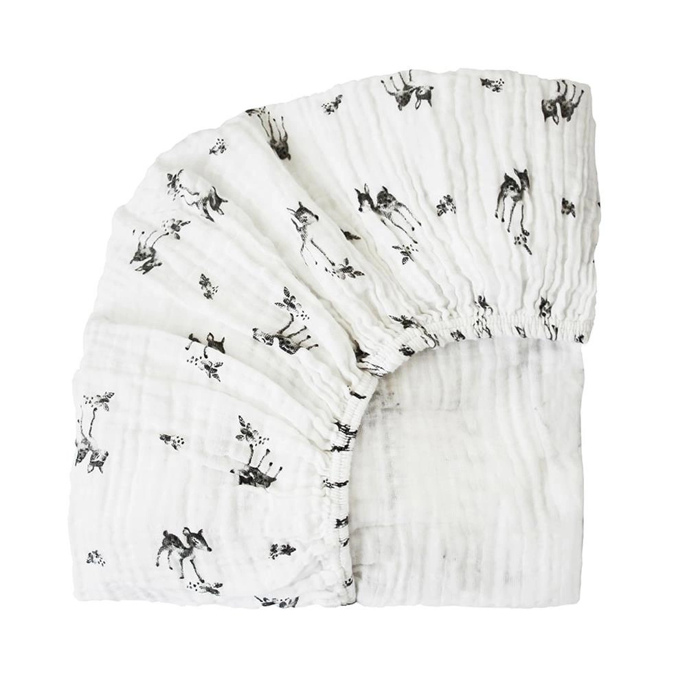 Wyjątkowo miękkie i przyjemne w dotyku prześcieradło z bawełny muślinowej do materaca Kumi. Od teraz twoje dziecko będzie chciało zasypiać tylko na nim.