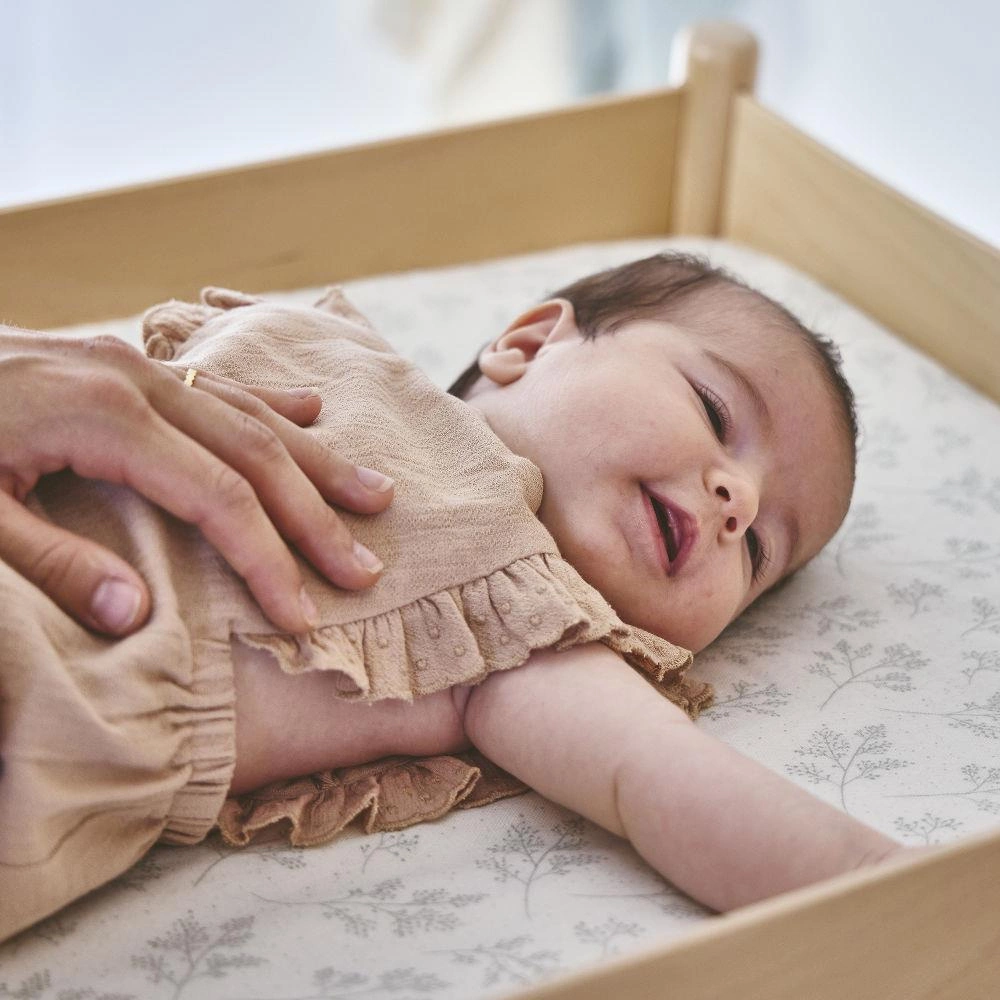 Zainspirowany pagodami Dalekiego Wschodu, przewijak PAGO z drewna bukowego jest zarówno piękny, jak i funkcjonalny, dzięki dwóm lekko zakrzywionym półkom do przechowywania. Jego prosty i nowoczesny design harmonijnie wpasowuje się w wystrój sypialni lub łazienki. To idealny pomocnik, który zapewni komfort i bezpieczeństwo podczas przewijania Twojego dziecka. Solidna konstrukcja pozwala na użytkowanie od narodzin aż do osiągnięcia wagi 15 kg. Podwyższone boki gwarantują bezpieczną zmianę pieluszek. Dołączony materac, został wyprodukowany we Francji, wypełniony jest pianką z recyklingu ORBIS, co zapewnia miękkość i komfort. Gdy dziecko podrośnie, przewijak z łatwością zamienia się w funkcjonalny stolik, idealny do rysowania, układania klocków i wielu innych dziecięcych zabaw.