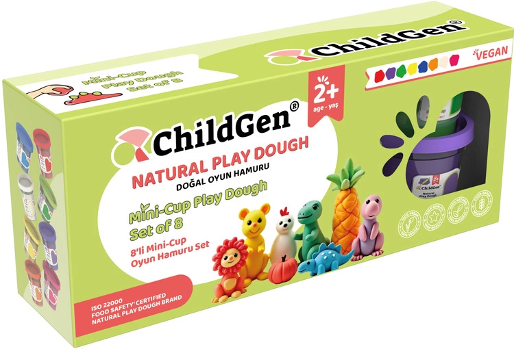 ChildGen, 100% naturalna ciastolina zestaw eco kubków (8 szt.) wegańska, certyfikowana, 2y+