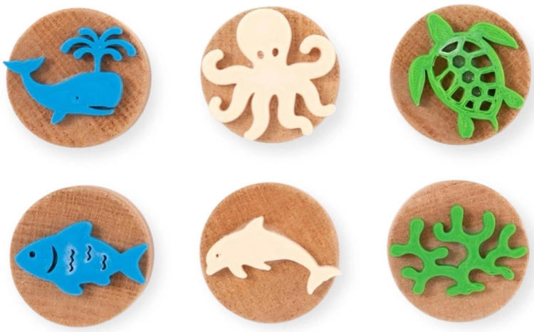 Pozwól swojemu dziecku zanurzyć się w zaczarowany świat podwodnych przygód dzięki wyjątkowemu zestawowi drewnianych stempelków od Childgen! Te ręcznie wykonane stempelki, łączące naturalne drewno z nowoczesną technologią druku 3D, gwarantują godziny twórczej zabawy, a jednocześnie wspierają rozwój motoryki małej. Zestaw jest idealny dla dzieci od 15. miesiąca życia, aby wspomagać rozwój siły rączek, koordynacji i precyzji ruchów – świetne przygotowanie do bardziej zaawansowanych aktywności artystycznych.