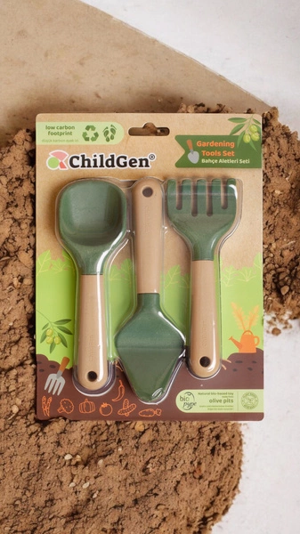 ChildGen, Zestaw zabawkowych narzędzi ogrodowych do ćwiczenia motoryki małej, grabki, szpadel, łopatka, bio plastik