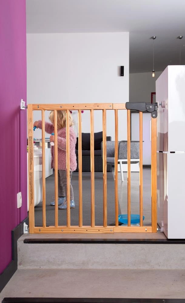 Stwórz bezpieczną przestrzeń w domu dla Twojego dziecka. Drewniana barierka rozporowa o regulowanej szerokości 73,5 – 104 cm uniemożliwi dziecku wejście i zejście po schodach. Montuje się ją bez użycia narzędzi, w łatwy i szybki sposób. Bramkę można otworzyć w obu kierunkach, używając jednej ręki. Posiada też ogranicznik umożliwiający otwieranie tylko w jedną stronę. Bramka przeznaczona dla dzieci do 24 miesiąca. Nigdy nie pozostawiaj dziecka bez opieki przy otwartej bramce.