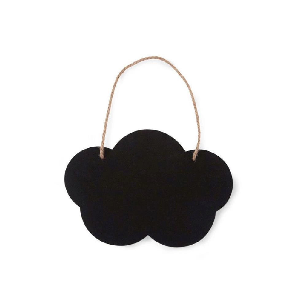 Zestaw dwóch tabliczek w kształcie chmurek do zawieszenia w dziecięcym pokoju. Ładna i funkcjonalna ozdoba - za pomocą kredy (nie jest zawarta w zestawie) można zrobić ważną notatkę lub narysować zabawny rysunek. Każda tabliczka posiada sznureczek.