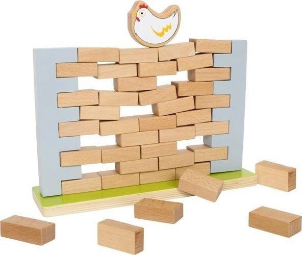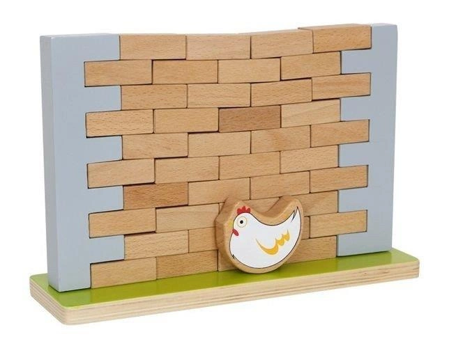 Ile kamieni da się ze ściany wyciągnąć zanim się zawali? ...zastanawia się kogut. Sprytne dzieci przy tej zabawie mogą się dużo nauczyć o statyce, równowadze i konstrukcji.