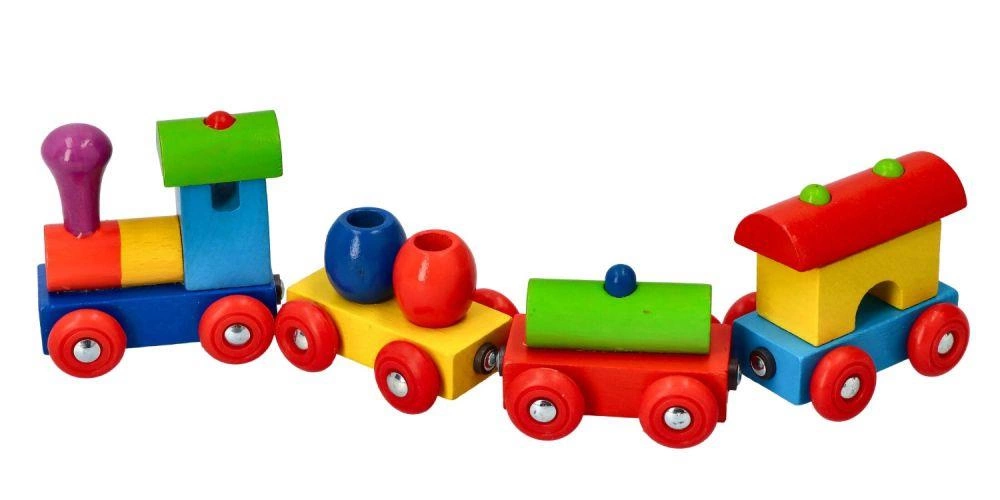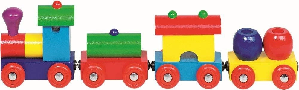 Pociąg składa się z lokomotywy oraz 3 wagoników połączonych ze sobą magnesami. Dodatkowo dla urozmaicenia każdy z wagoników wiezie inny ładunek, dzięki czemu dziecko może poznawać różnorodność kształtów i kolorów.