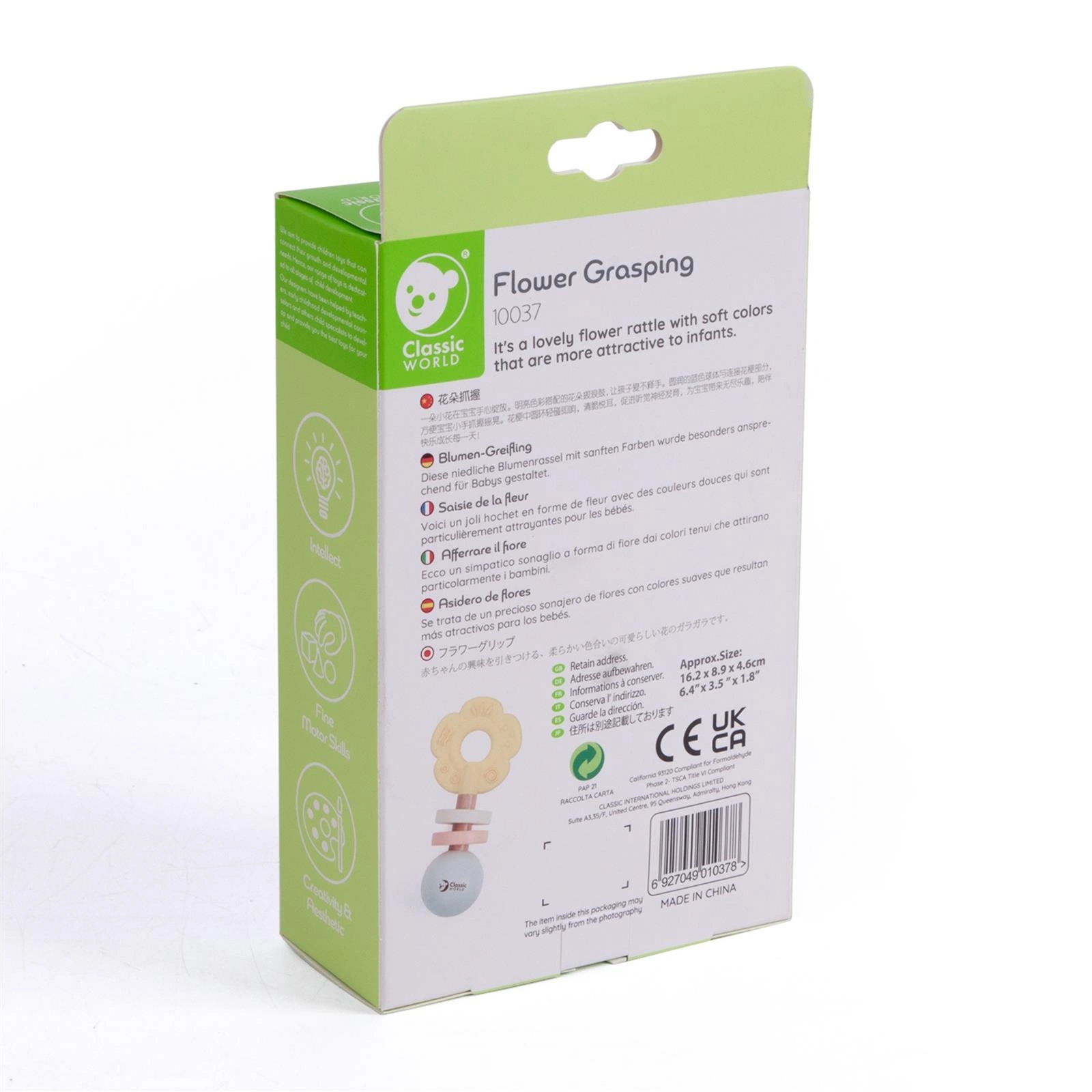 CLASSIC WORLD Drewniana Pastelowa Grzechotka Gryzak 2w1 Kwiatuszek 0+