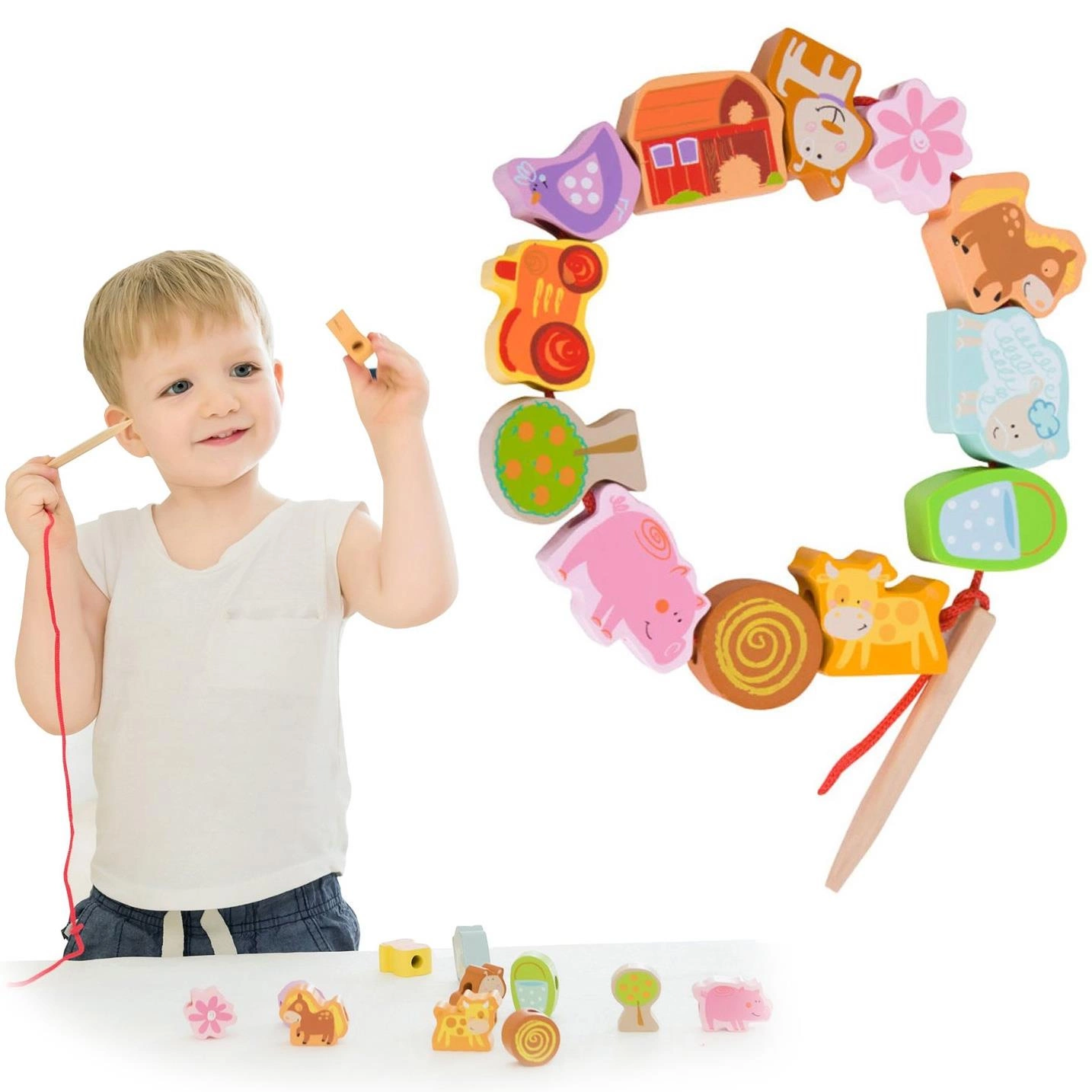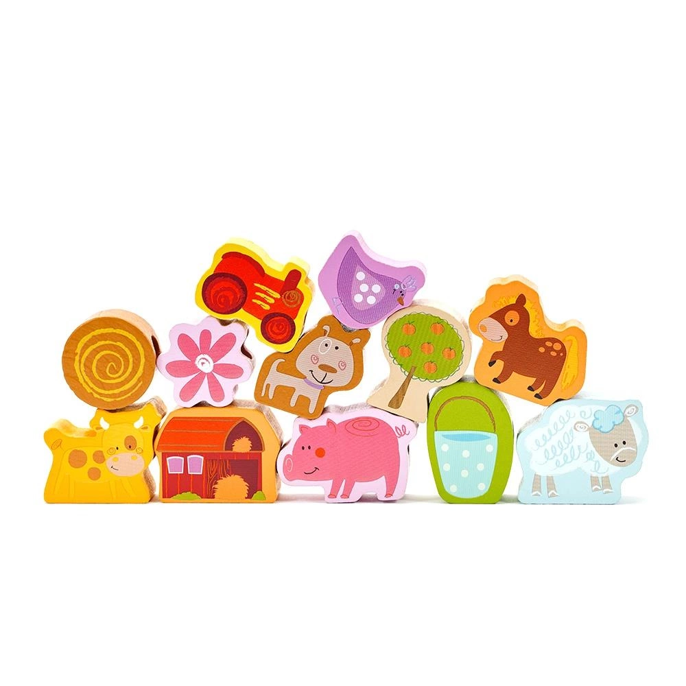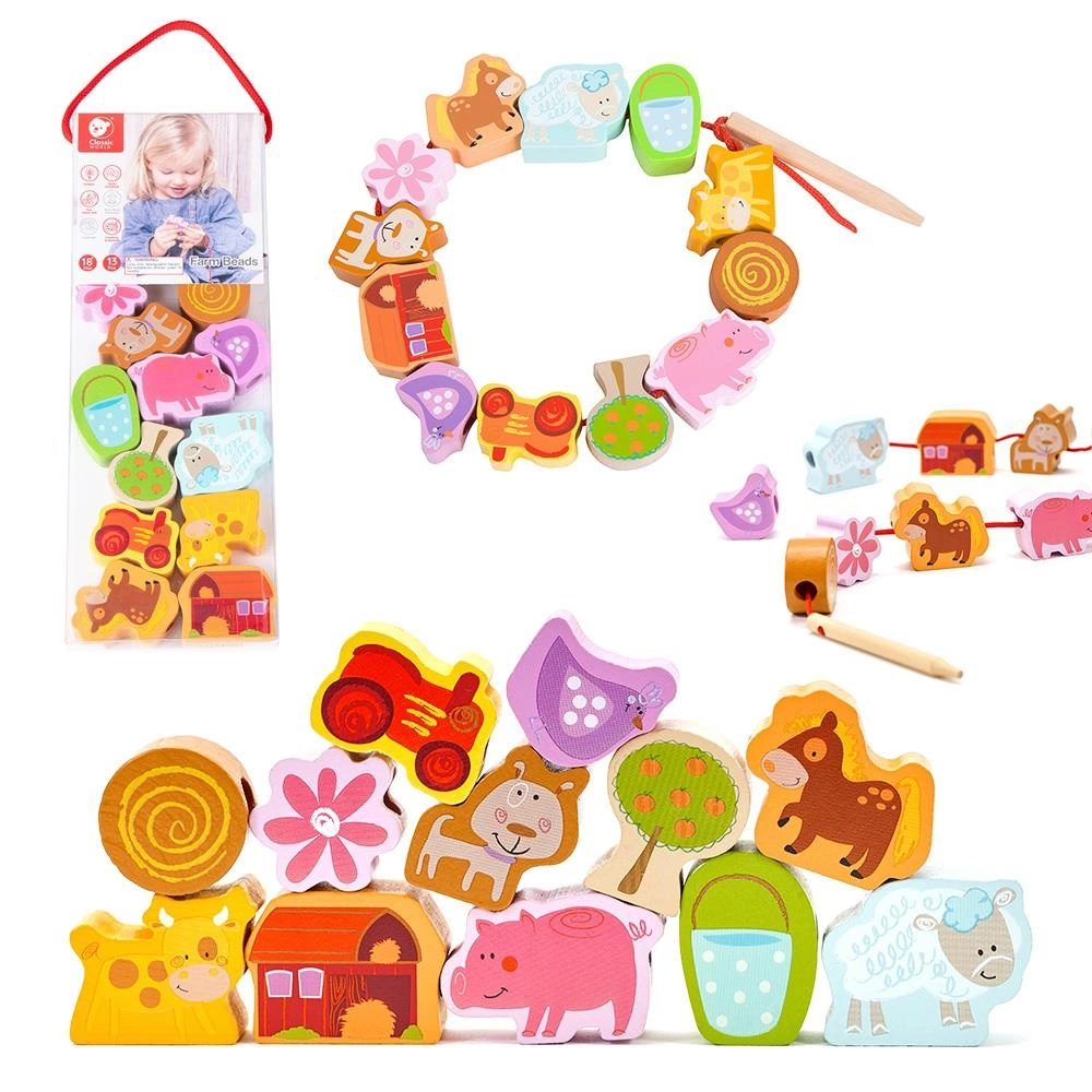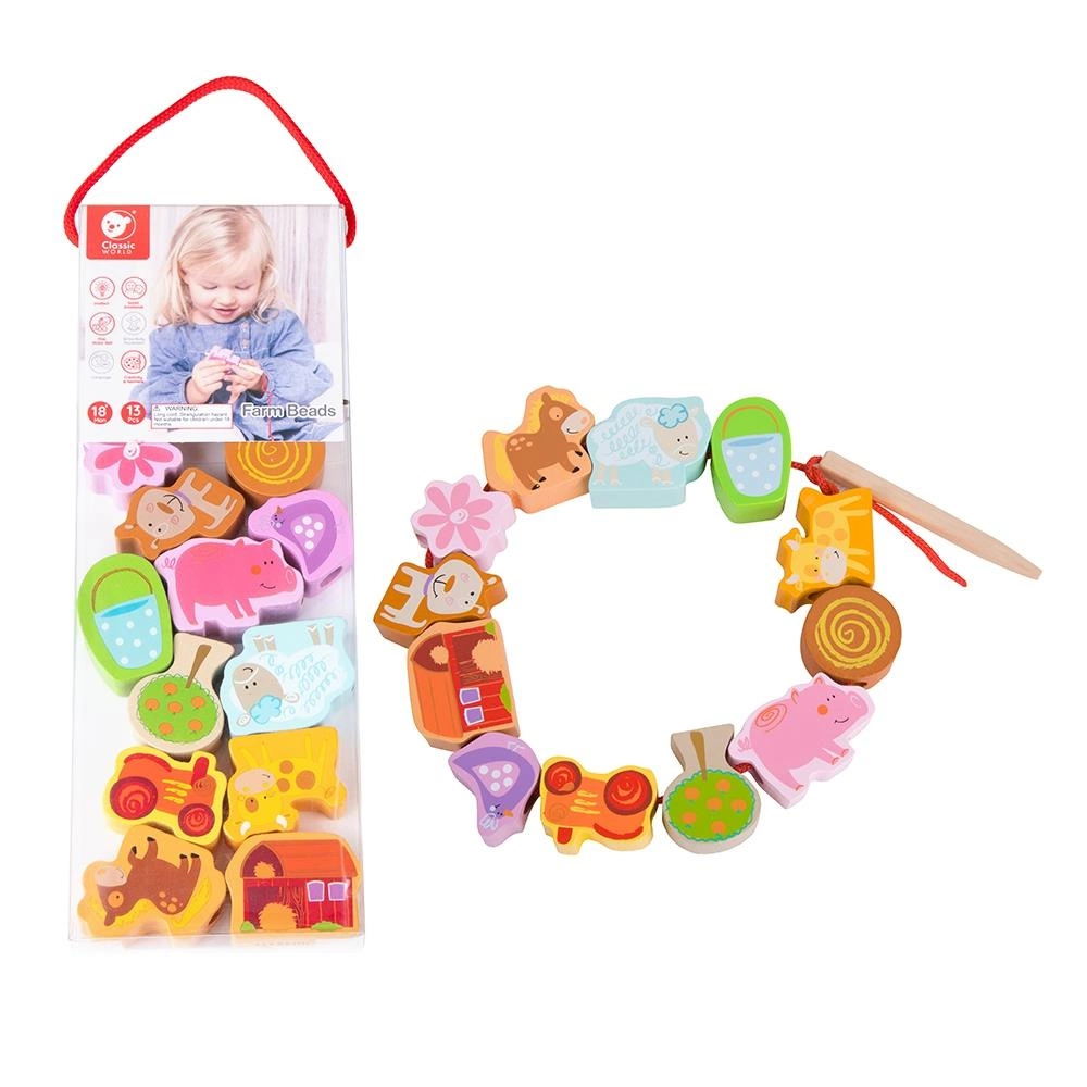 CLASSIC WORLD Drewniane Klocki do Nawlekania Farma 13 el.