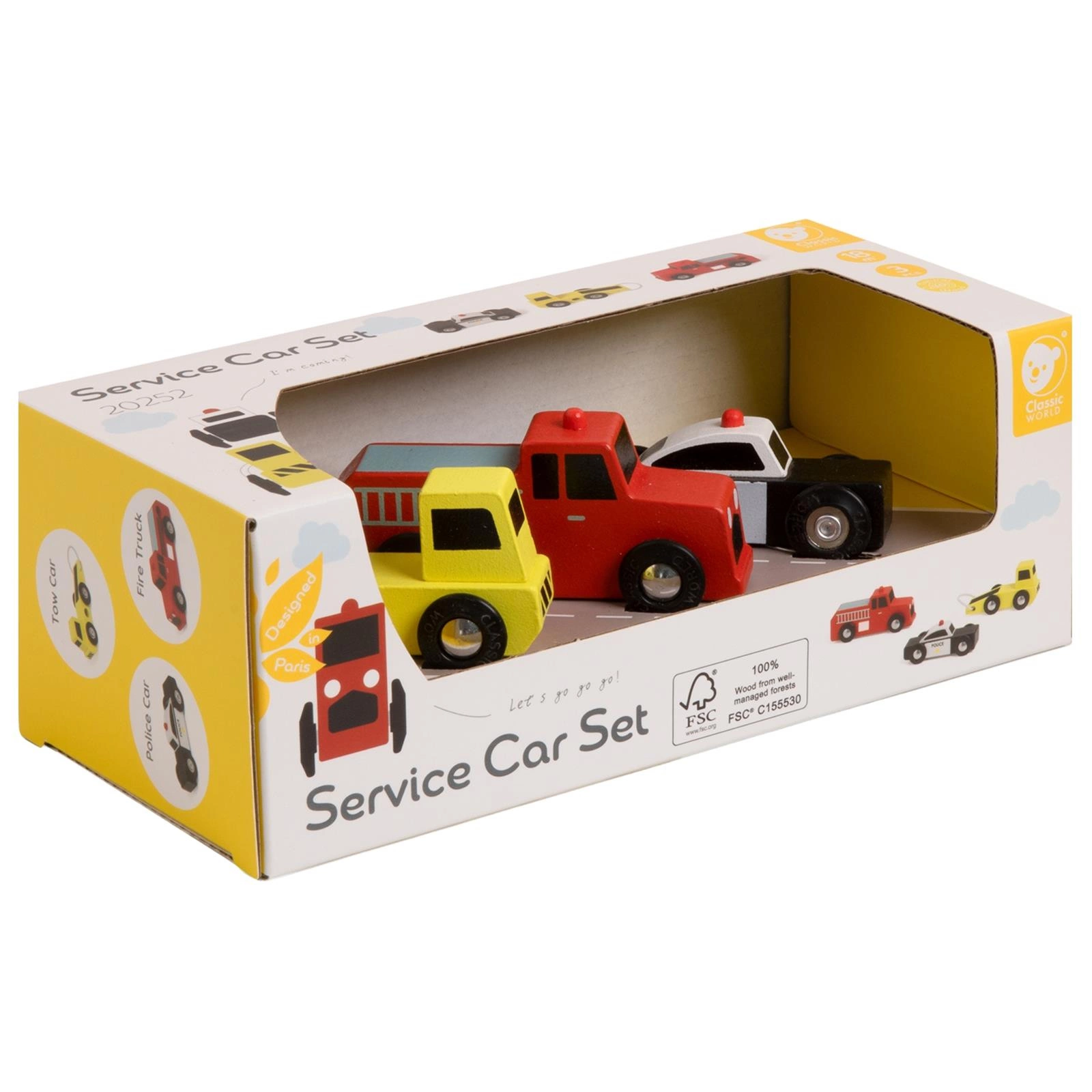 CLASSIC WORLD Drewniane Samochodziki Policja Straż Laweta Zestaw 3 szt.