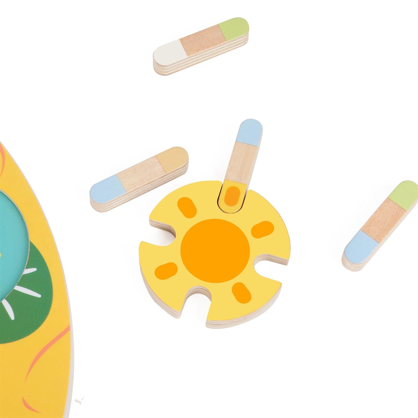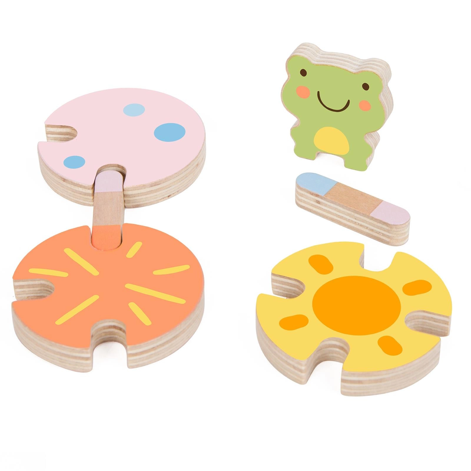 -Drewniane elementy o delikatnej, pastelowej kolorystyce