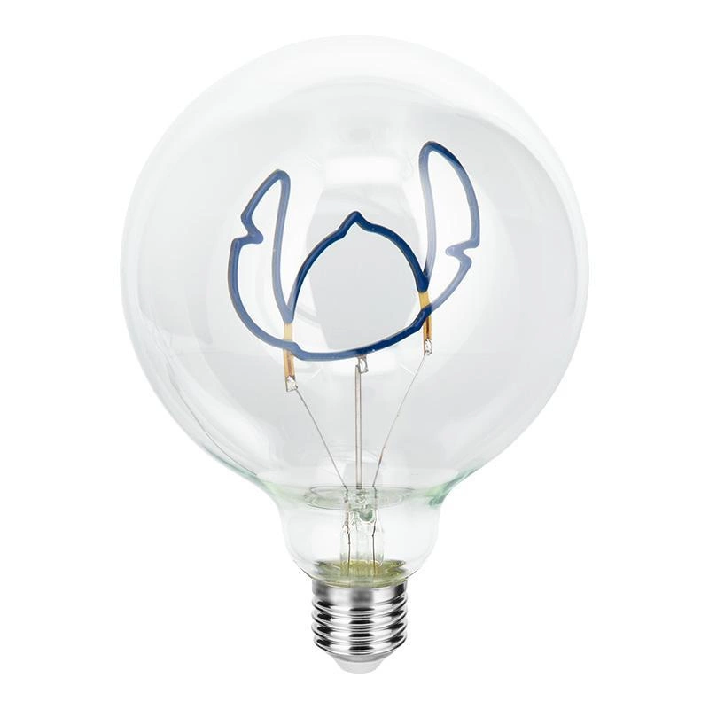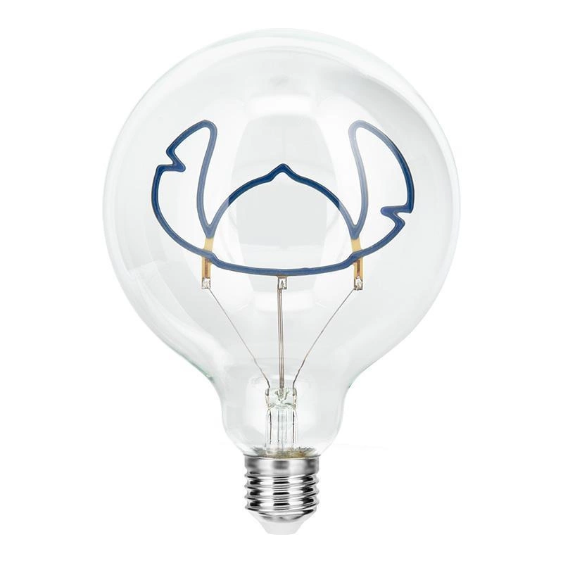 Żarnik LED w tej dekoracyjnej żarówce ma kształt głowy Sticha. Można ją wkręcić w dowolną lampę z gwintem E27. Gdy tylko naciśniesz przełącznik, żywa niebieska poświata doda charakteru Twojemu domowi.