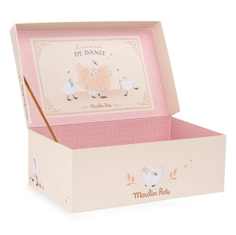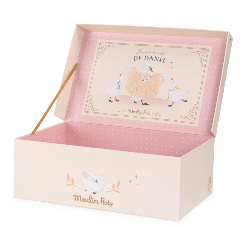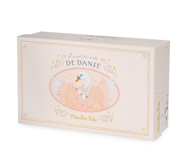 Każda maskotka z kolekcji Mała Szkoła Tańca posiada w brzuszku delikatny dzwoneczek, który wydaje delikatny dźwięk. Mierzy 18 cm. Łabędź został zaprojektowany tak, aby był łatwy do chwycenia przez małe rączki dziecka. Spełni się w roli towarzysza snu lub jako ozdoba dziecięcego pokoju.