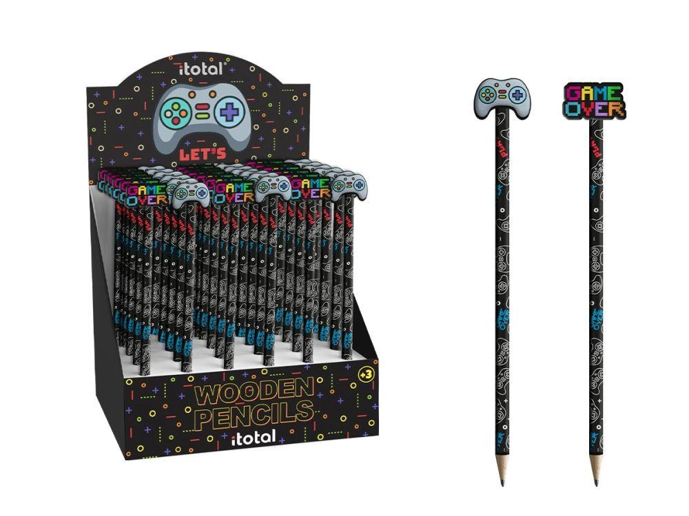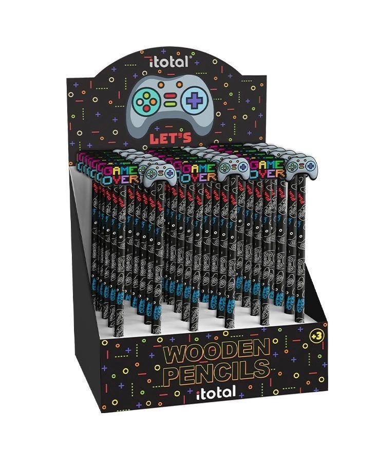 Display 36 szt Drewniany ołówek z motywem gamingowym