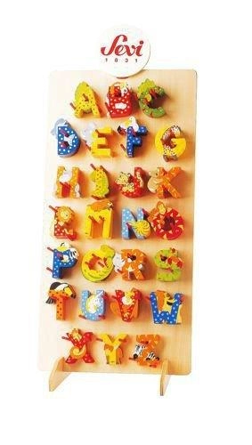 Display na drewniane literki Sevi, zwierzęta/ klauny, zmieści 144 sztuki.