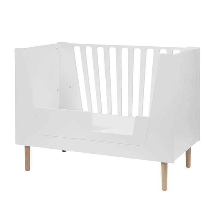 Standardowe łóżeczko z nowej linii mebli Done by Deer zostało zaprojektowane i dostosowane do potrzeb i rozwoju dziecka, służąc dziecku przez wiele lat. Mebel posiada dwa regulowane ustawienia wysokości, dzięki czemu może pełnić funkcję łóżeczka dla niemowlęcia oraz łóżka dla Maluszka, a w późniejszym czasie również sofy. Spód łóżeczka umieszczony w górnej pozycji pozwoli mamie na bliski kontakt z noworodkiem bez pochylania się. Kolejnym etapem przekształcenia łóżeczka dla malucha jest demontaż jednego boku i umieszczenie barierki ochronnej (dostepnej osobno). A gdy maluch wyrośnie z łóżeczka, może stać się wygodną sofą która pozwoli na spędzanie wspólnego czasu z dzieckiem. Do łóżeczka pasuje materac o wymiarach 120x60 cm. Wykonane jest z płyty MDF dzięki czemu jest lekkie, wygodne i bezpieczne. Elegancki nowoczesny styl, wpasuje się idealnie do niemal każdego rodzaju wnętrza.