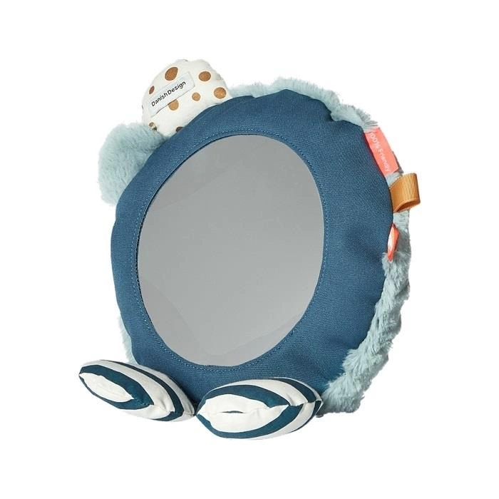 Nie ma nic milszego, niż słodka twarz malucha odbijająca się w lustrze. Miękkie lusterko posiada specjalne wypełnienie dzięki, któremu zawsze stoi pod odpowiednim kątem, tak aby dziecko miało łatwość uniesienia głowy. Nóżki lusterka posiadają elemety pobudzające zmysły dziecka takie jak grzechotka i szeleszczący element w jednej z nich, również górny element zawiera piszczałkę, dzięki czemu lusterko możemy spokojnie nazwać aktywnym.