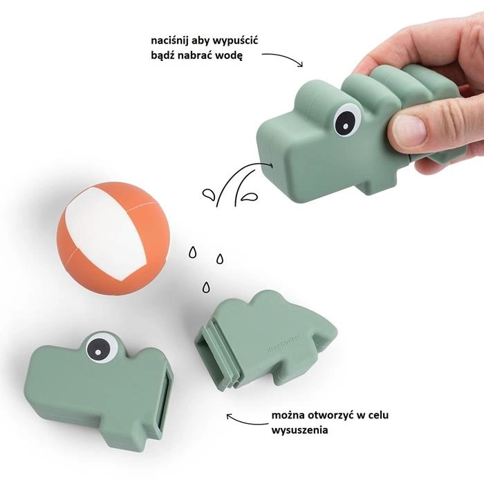 Ta zabawna zabawka do kąpieli doskonale wzmacnia chwyt i umiejętności motoryczne Twojego malucha. Wystarczy ścisnąć krokodyla, aby napełnić go wodą i nacisnąć, aby pryskał wodą, dzięki czemu kąpiel staje się zarówno zabawna, jak i interaktywna.