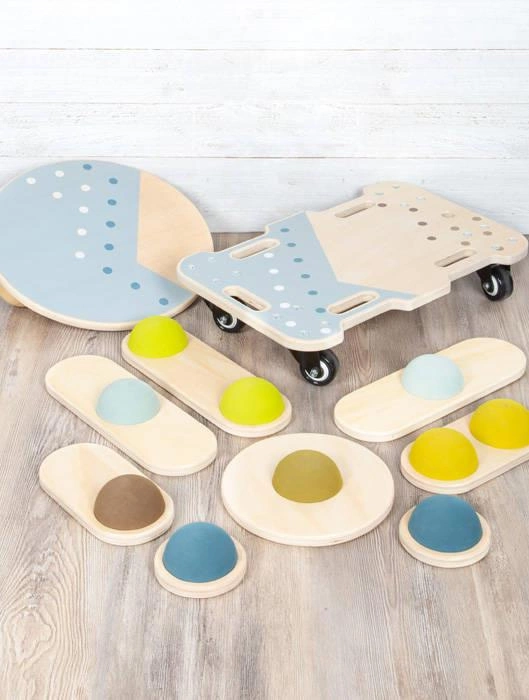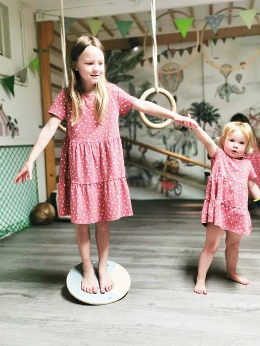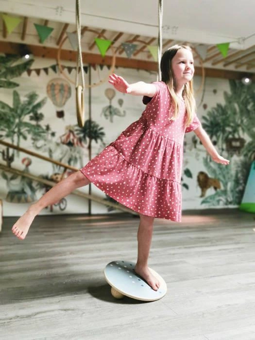 Wspaniała deska do balansowania Adventure Small Foot wykonana z drewna wysokiej jakości, spodoba się wszystkim aktywnym pociechom. Stabilna, w modnych odcieniach szarości i naturalnego drewna wypełni każde wnętrze. Znakomita alternatywa na zabawy ruchowe w domu, podczas deszczowej pogody i nie tylko. Bezpieczne otwory na rączki dziecka mogą służyć także do przywiązania liny i szalonych zabaw. Ćwiczenia na desce rozwijają koordynację, równowagę, motorykę dużą oraz wiarę we własne możliwości. Poziom trudności regulujemy przy pomocy dwóch drewnianych kulek, które można przykręcić w różnych pozycjach na spodzie deski. To zabawka, która rośnie razem z dzieckiem i zawsze oferuje dużo śmiechu i szaleństw. Deska balansująca Small Foot może stać się wspaniałym uzupełnieniem ćwiczeń z innymi produktami z kolekcji Adventure, z którymi zbudujemy cały kurs gimnastyczny dla naszych pociech.