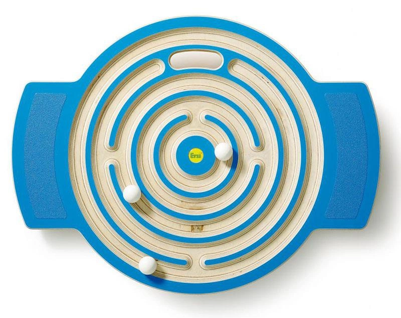 Platforma do balansowania Labirynt marki Erzi to znakomity przyrząd łączący aktywność ruchową ze świetną zabawą. Zadaniem dziecka jest odpowiednie poprowadzenie każdej z trzech kulek przez labirynt do mety. Jednak nie przy użyciu dłoni, a stóp! Dysk posiada antypoślizgowe podkładki pod stopy, na których należy stanąć i balansować całym ciałem. Propozycja niemieckiej marki Erzi została wykonana ze sklejki brzozowej. Zintegrowany uchwyt do przenoszenia służy również jako uchwyt na kulki.