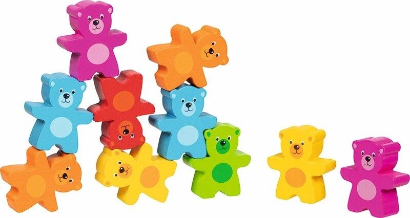Układanie kolorowych misiów to zabawna gra pomagająca dzieciom rozwijać umiejętności motoryczne i koncentrację. Kolorowe misie można układać na wiele sposobów tworząc np. wieże i piramidy. Ta drewniana gra może pełnić funkcję klasycznej układanki dla dzieci, ale jednocześnie oferuje o wiele więcej. Komplet zawiera drewniane elementy pod postacią kolorowych misiów. Ze względu na ich specyficzny kształt, zestaw można układać na wiele różnych sposobów i cieszyć się z uzyskanych efektów. Drewniane gry dla dzieci zawierające kształtne klocki stanowią doskonałe źródło wspaniałej rozrywki dla każdego malucha. Po zakończonej zabawie, powstała konstrukcja może zdobić pokój dziecka. Ta drewniana gra to doskonały pomysł na prezent dla chłopca i dziewczynki.
