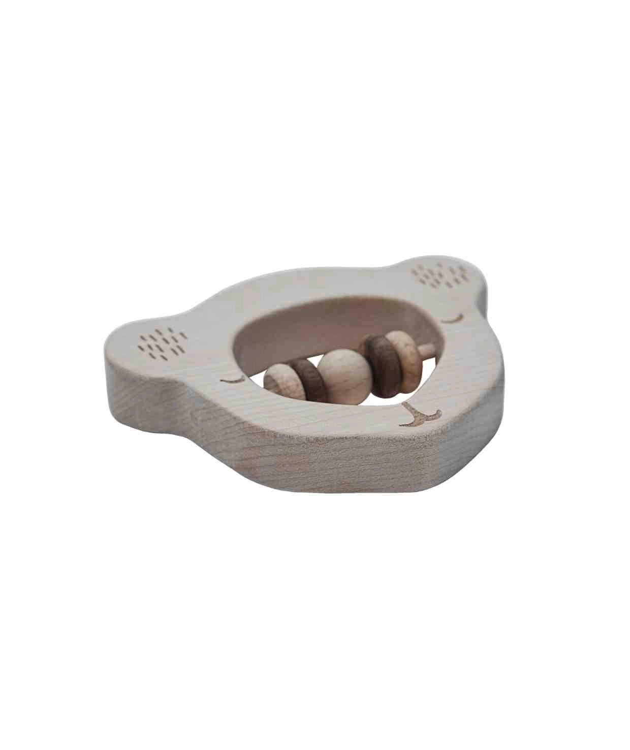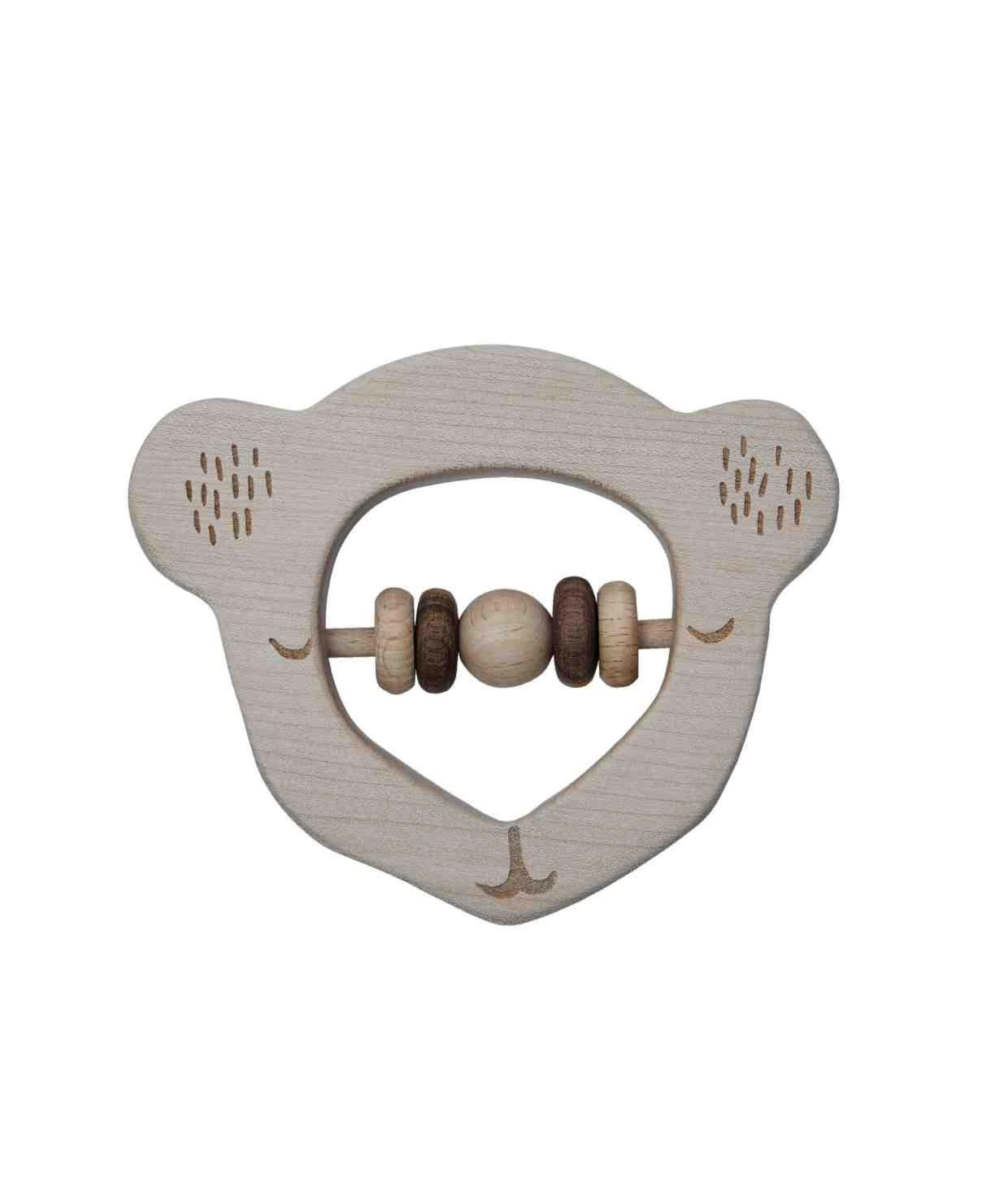 Drewniana Grzechotka Koala marki Wooden Story to wyjątkowa zabawka, która łączy funkcje gryzaka i grzechotki, idealna dla najmłodszych. Dzięki swojej ergonomicznej konstrukcji zapewnia wygodny i pewny uchwyt, który łatwo chwyci każda mała rączka. Grzechotka nie tylko przyciąga wzrok swoim uroczym designem w kształcie koali, ale pełni również rolę bezpiecznego gryzaka, który pomaga maluchowi przejść przez trudny okres ząbkowania. Jego specjalna struktura masuje dziąsła, zapewniając ulgę, ukojenie i komfort. Delikatny dźwięk wydawany przez grzechotkę stymuluje zmysł słuchu, rozwijając zmysły dziecka.