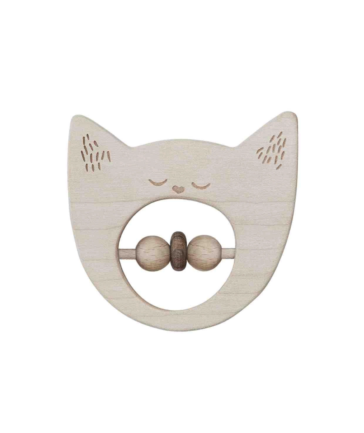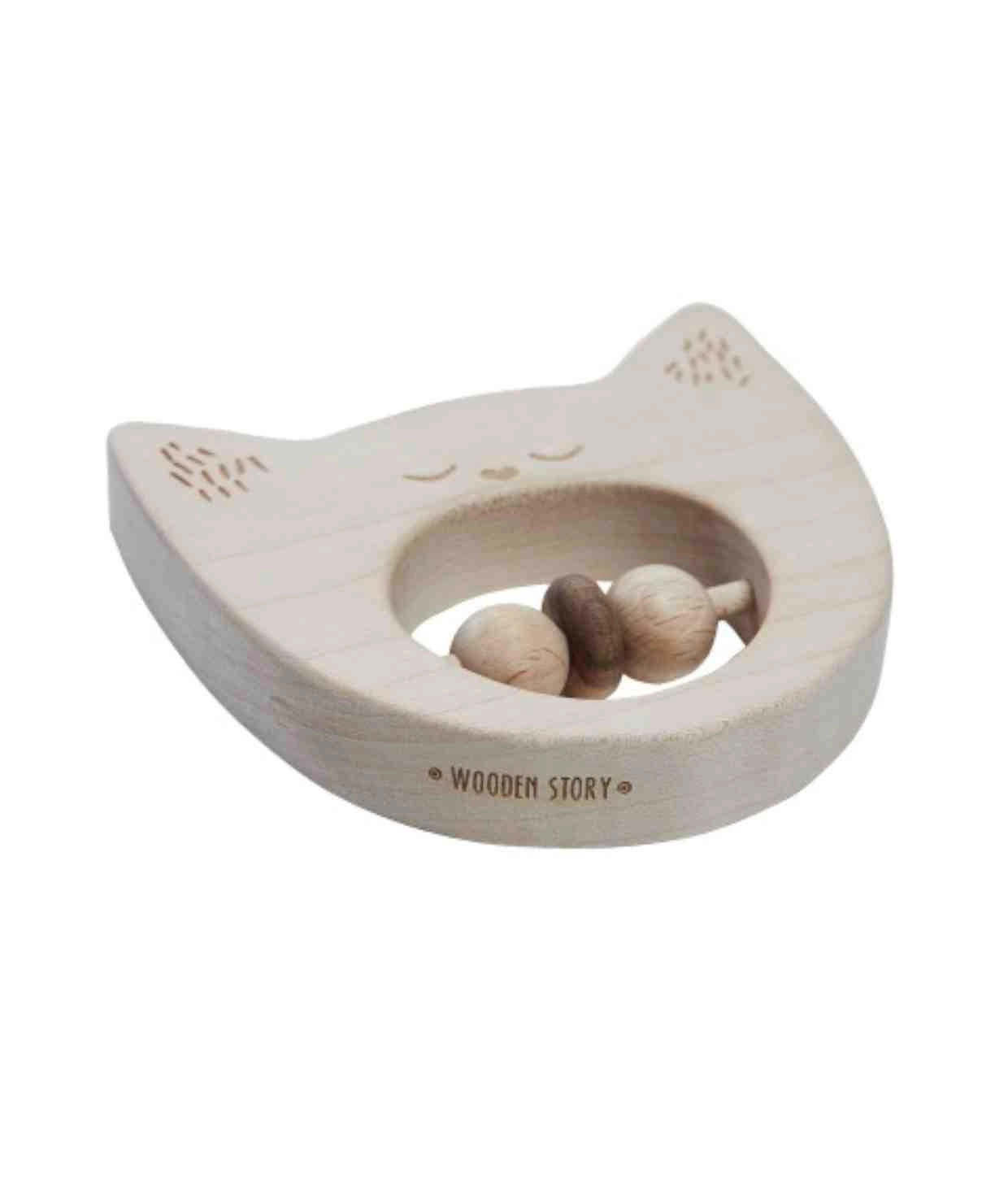 Drewniana Grzechotka Kot marki Wooden Story to wyjątkowa zabawka, która łączy funkcje gryzaka i grzechotki, idealna dla najmłodszych. Dzięki swojej ergonomicznej konstrukcji zapewnia wygodny i pewny uchwyt, który łatwo chwyci każda mała rączka. Grzechotka nie tylko przyciąga wzrok swoim uroczym designem w kształcie kota, ale pełni również rolę bezpiecznego gryzaka, który pomaga maluchowi przejść przez trudny okres ząbkowania. Jego specjalna struktura masuje dziąsła, zapewniając ulgę, ukojenie i komfort. Delikatny dźwięk wydawany przez grzechotkę stymuluje zmysł słuchu, rozwijając zmysły dziecka.