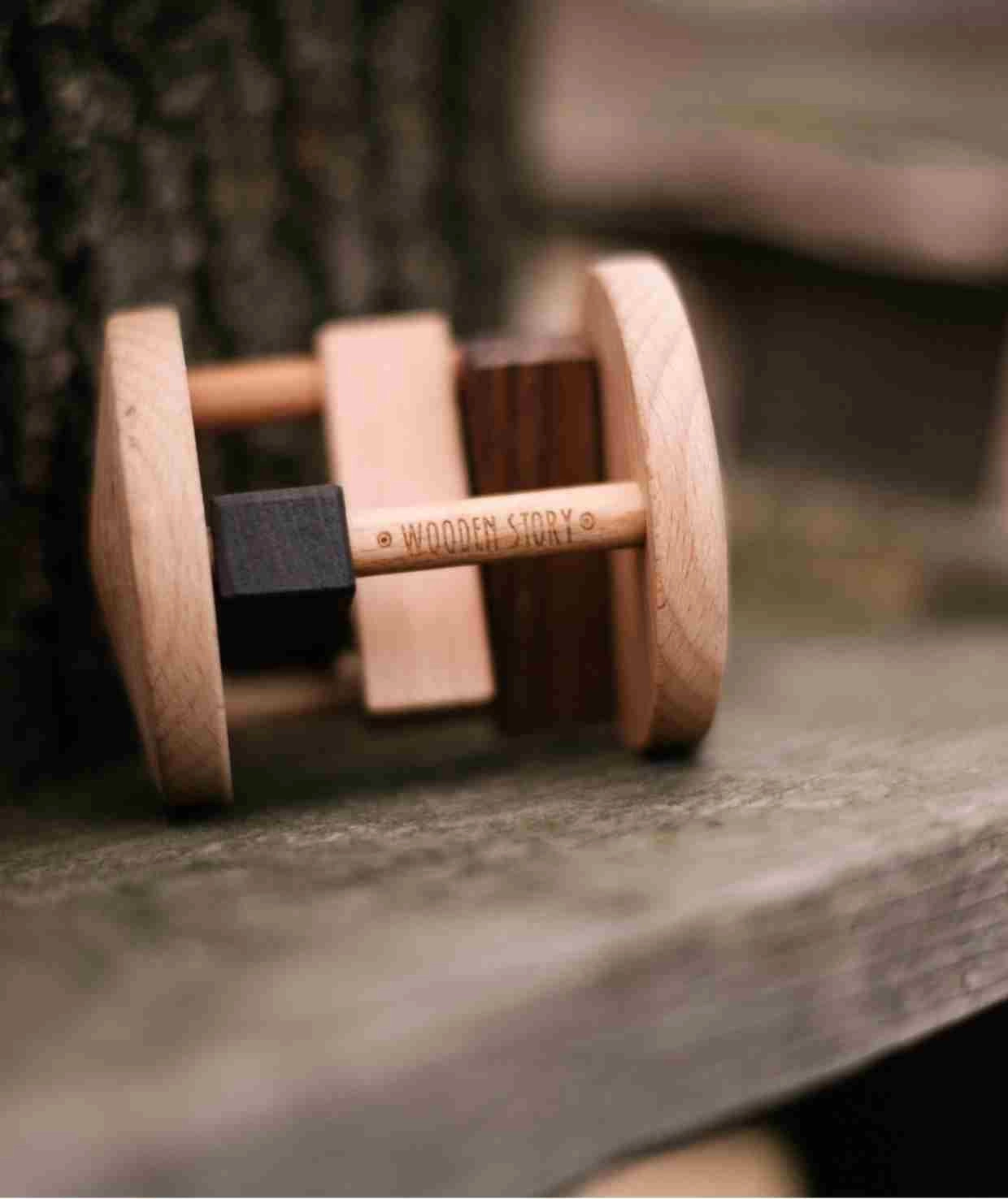 Drewniana Grzechotka Kwiczoł marki Wooden Story to zabawka inspirowana dźwiękami polskich ptaków, która rozwesela dzieci subtelnym, przyjemnym dla ucha dźwiękiem. Jest to prosta zabawka, idealna do toczenia po ziemi lub obracania w dłoniach, co wspiera rozwój motoryki małej. Dzięki połączeniu trzech gatunków drewna, Kwiczoł wydaje unikalny dźwięk, zachęcający do zabawy.