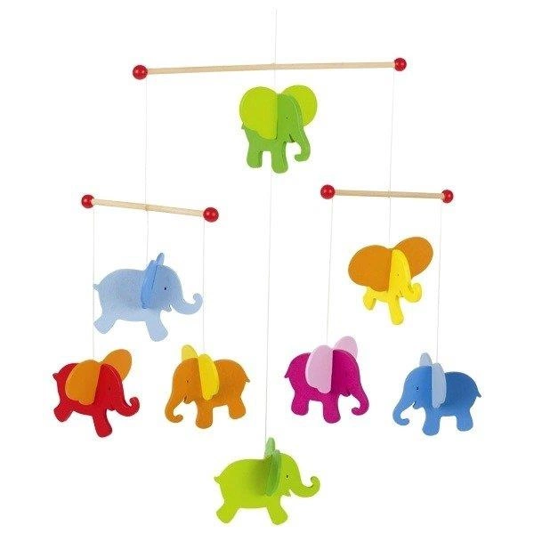 Drewniana karuzela do zawieszenia nad łóżeczko 3D "Słonie".