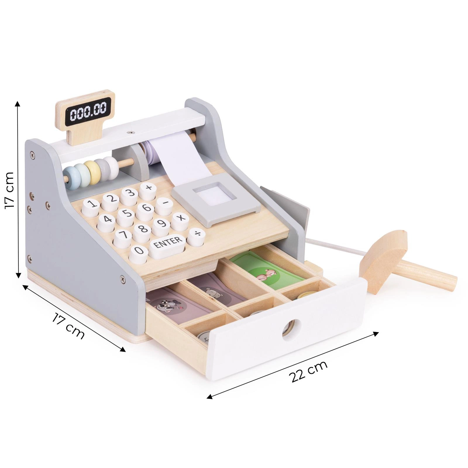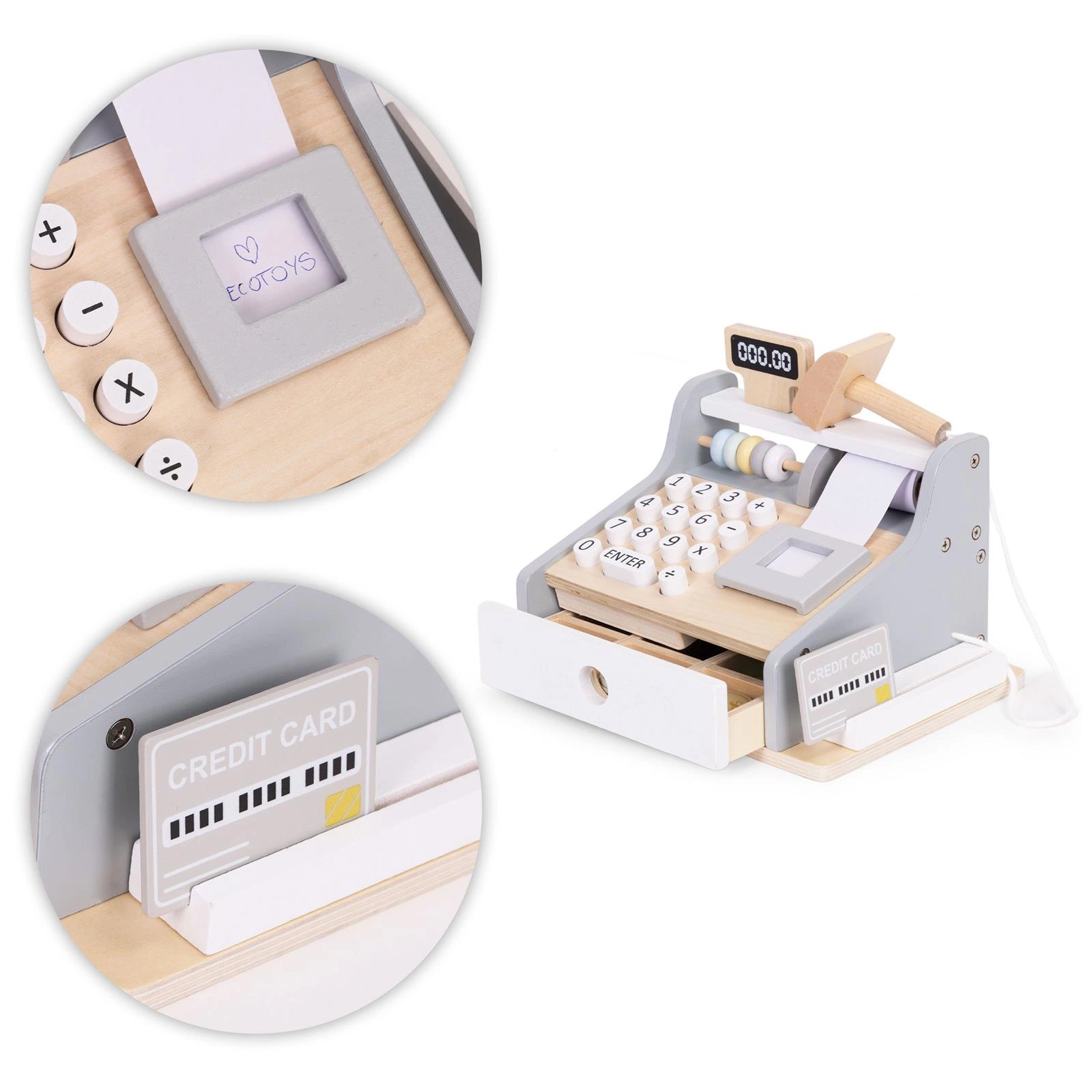 Drewniana kasa fiskalna dla dzieci skaner banknoty monety karta ECOTOYS