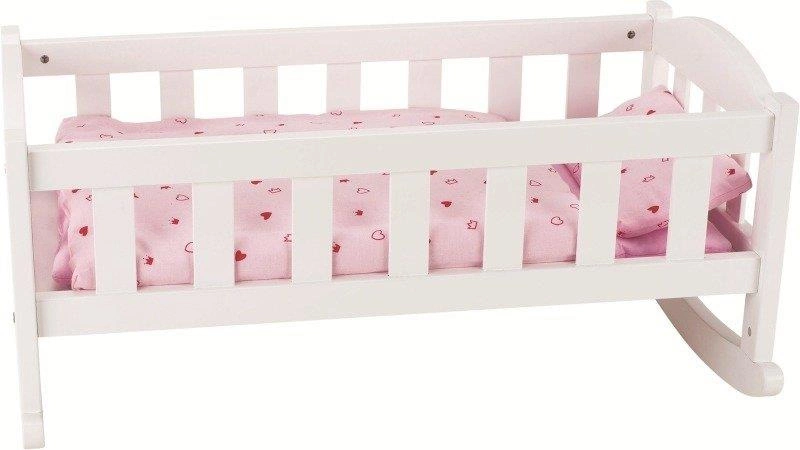Śnieżnobiała kołyska dla lalek nadaje dziecięcym igraszkom nowego wymiaru i pozwala maluchom utulić swoje zabawki do snu. Prosta i solidna konstrukcja posłuży dzieciom długie lata i będzie tłem dla wielu inspirujących scenek, w których maluchy będą wcielać się w rolę swoich rodziców i świetnie się przy tym bawić. Komplet nie zawiera pościeli.